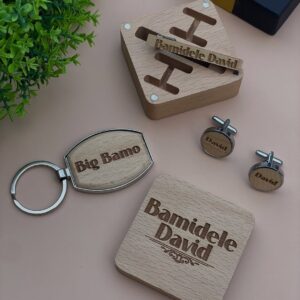 Wooden Cufflinks, Wooden Keyholder and Wooden TieClip