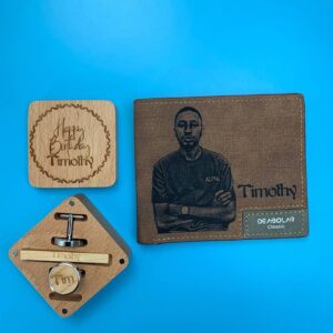 Wallet, Wooden Alarm Clock(with pen holder),Wooden Keyholder, Wooden Cufflinks and Wooden TieClip