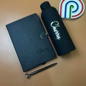Black Round Magnetic Notebook with Picture Page, Flask and Pen(Crystal head)