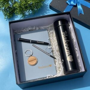 Blue Magnetic Pen Notebook with Flask and Leather Keyholder