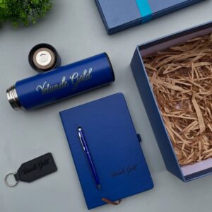 Blue Magnetic Pen Notebook with Flask and Leather Keyholder