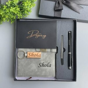Grey Passcode Notebook with Pen(REFILL), Wooden Keyholder and a Notecard