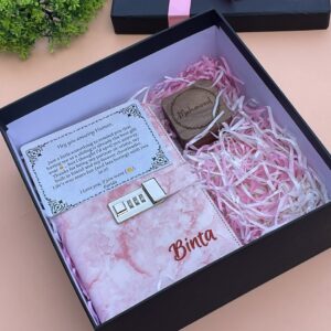 Pink Passcode Notebook with Wooden Cufflinks and Wooden TieClip