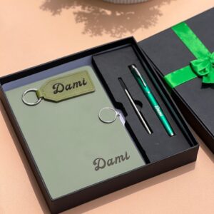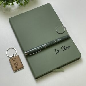 Sage Green Round Magnetic Notebook with Picture Page,Pen(REFILL) and Green Leather Keyholder