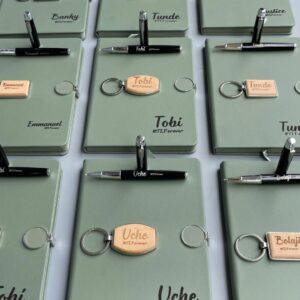 Set Of Sage Green Round Magnetic Notebooks with Pen and Wooden Keyholder
