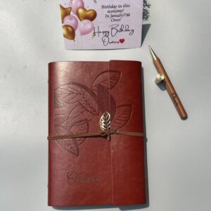 Blood Red Leatherbound Notebook with Pen and Notecard