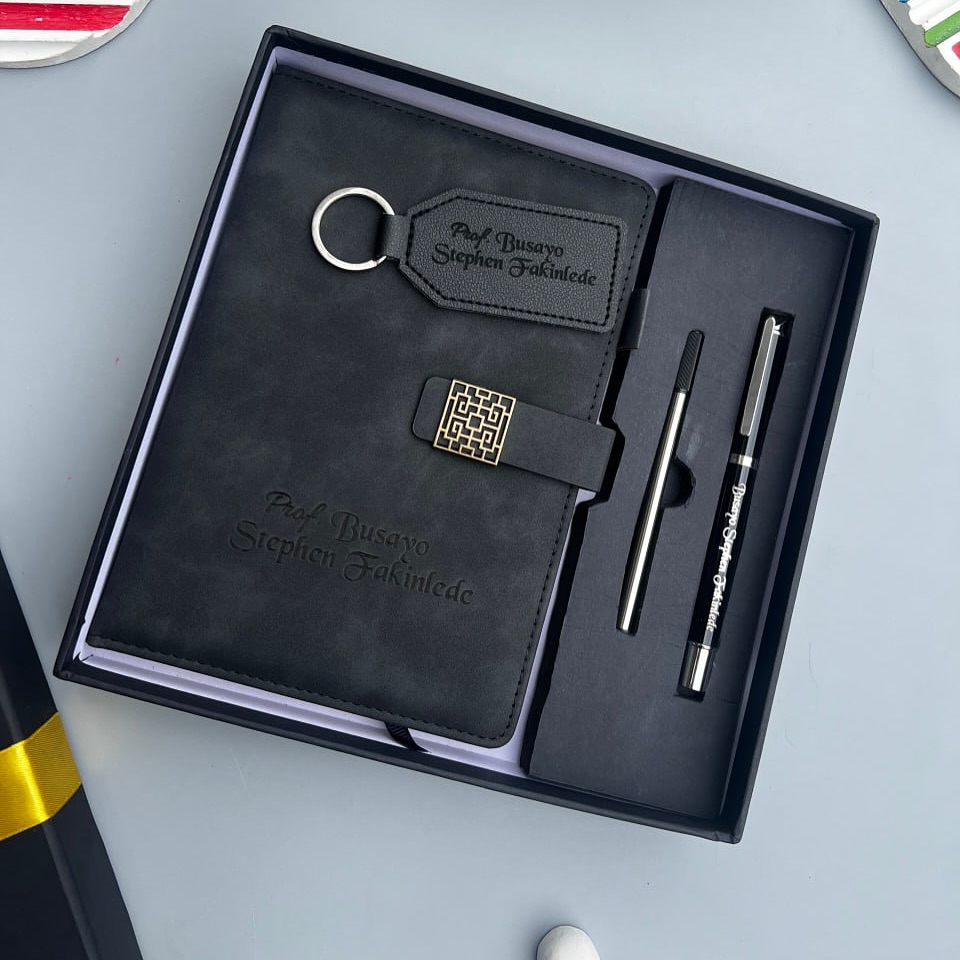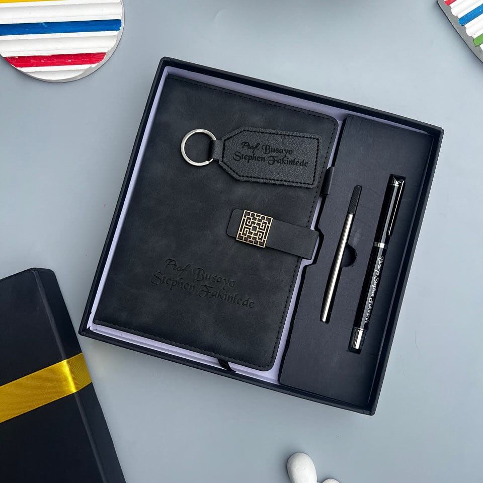 Black Marble Notebook with Pen(REFILL) and Leather Keyholder