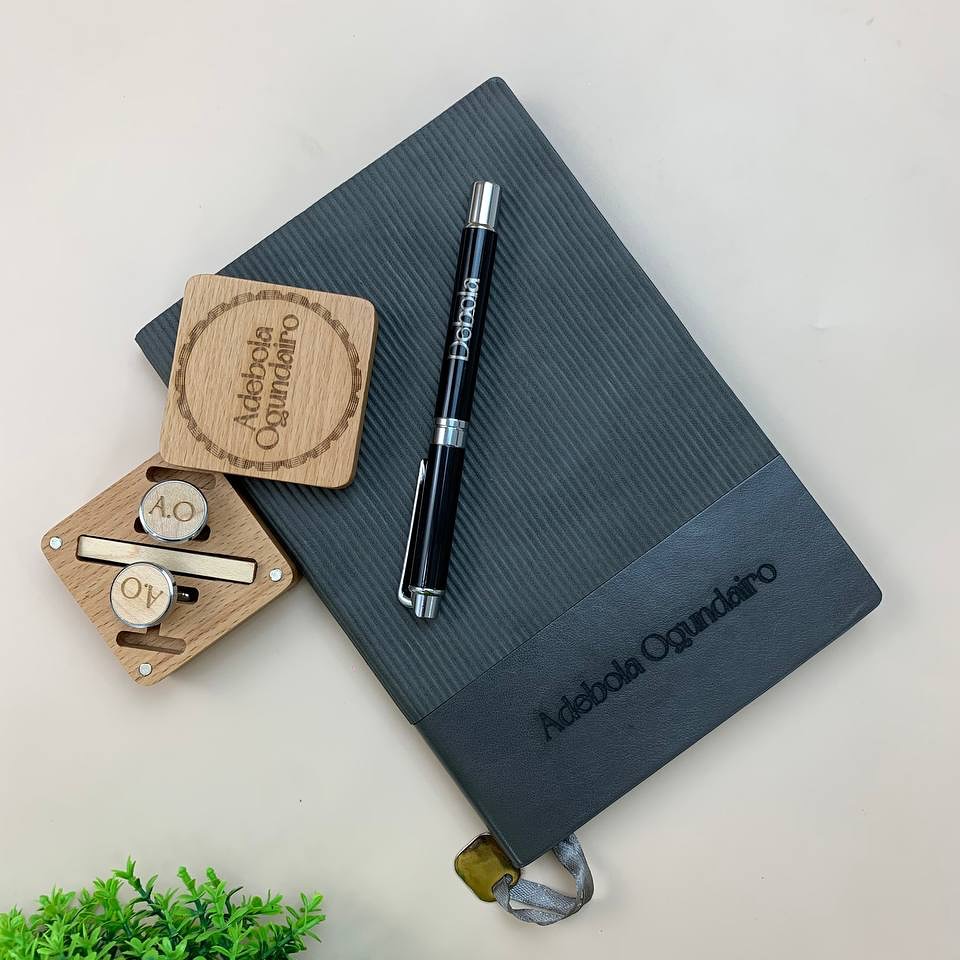 Black Softline Notebook with Pen(REFILL),Wooden Cufflinks and Wooden TieClip quantity
