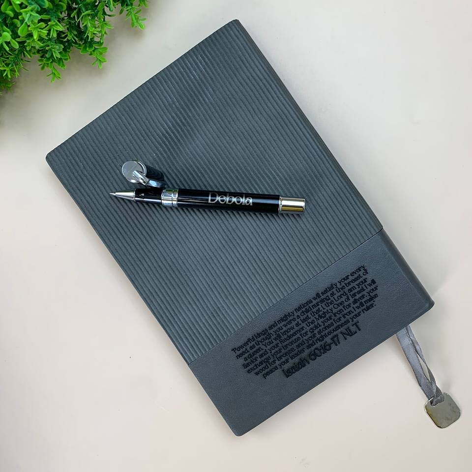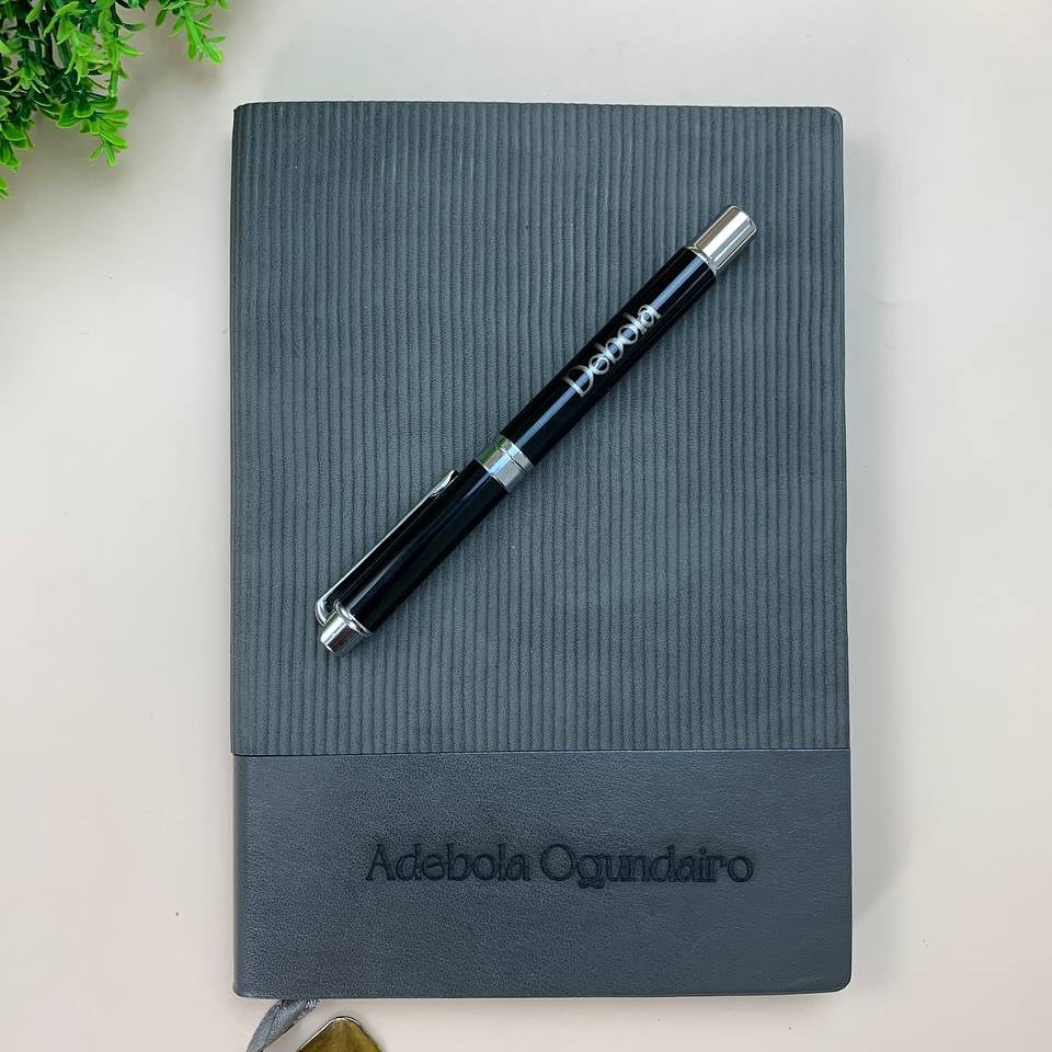 Black Softline Notebook with Pen(REFILL),Wooden Cufflinks and Wooden TieClip
