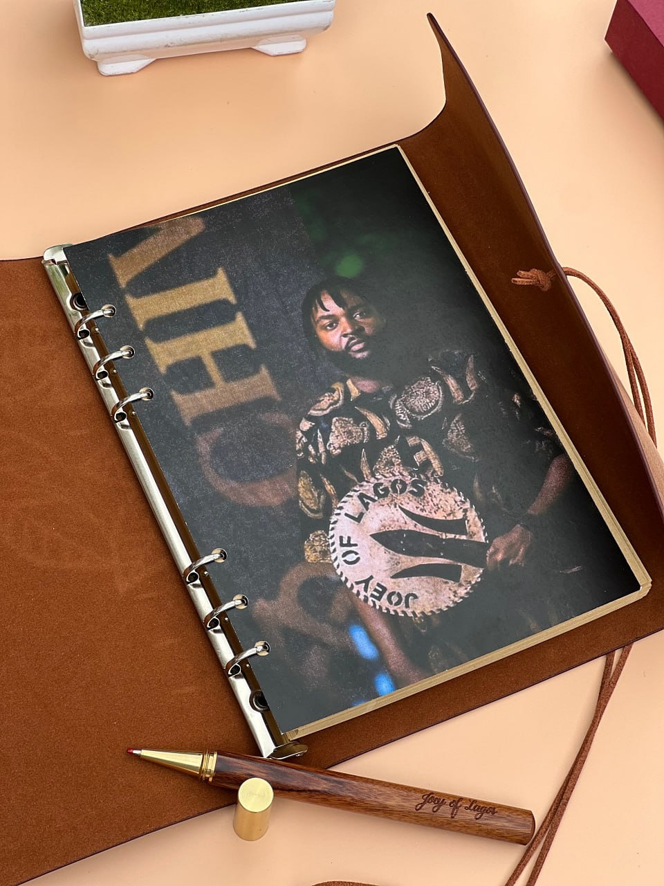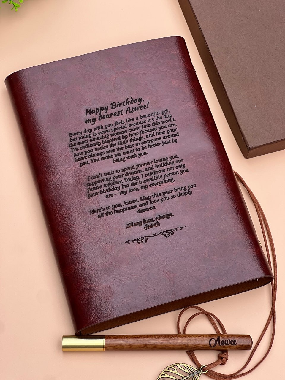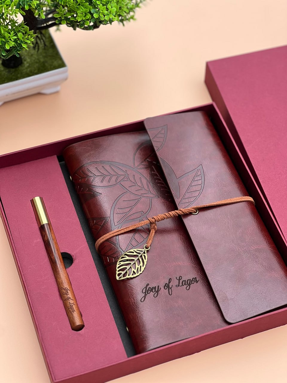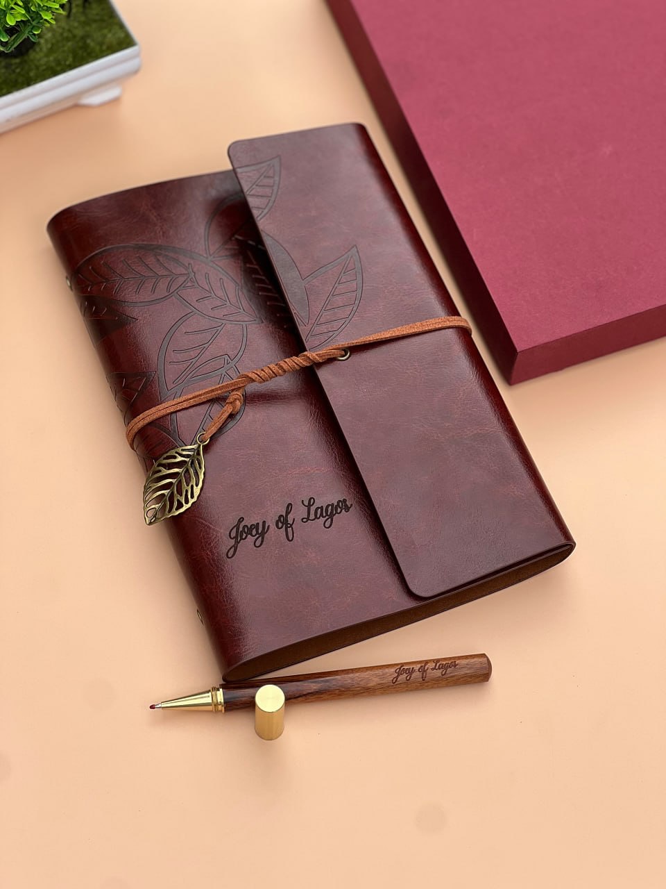 Leather Bound Notebook with Pen, Wooden Key Holder and Wallet