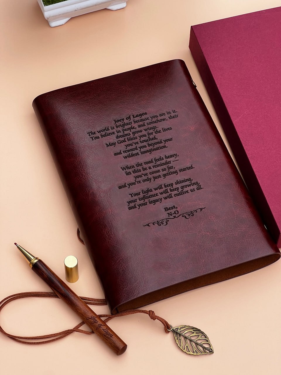 Blood Red/Brown Leatherbound Notebook with Pen and Picture Page quantity