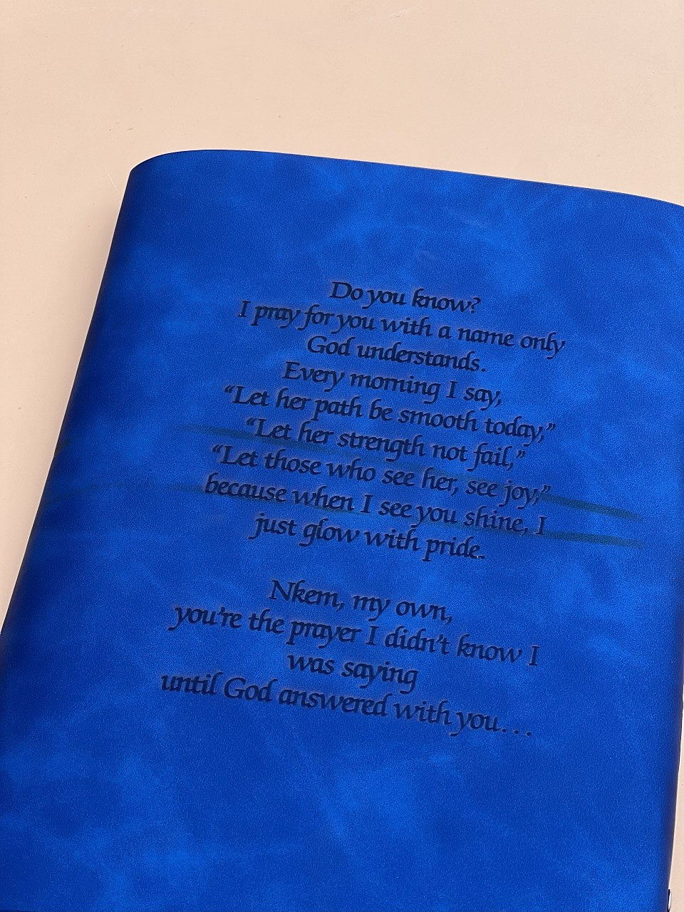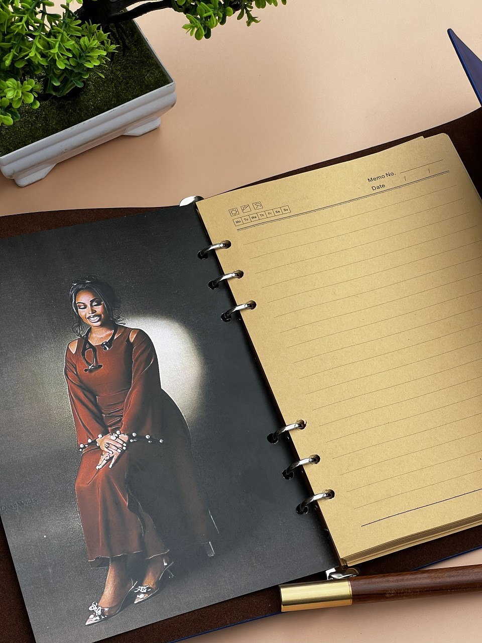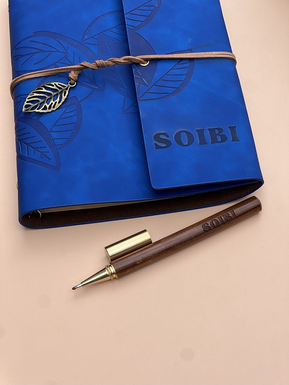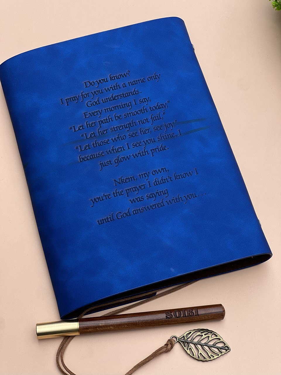 Blue Leatherbound Notebook with Pen and Picture Page quantity
