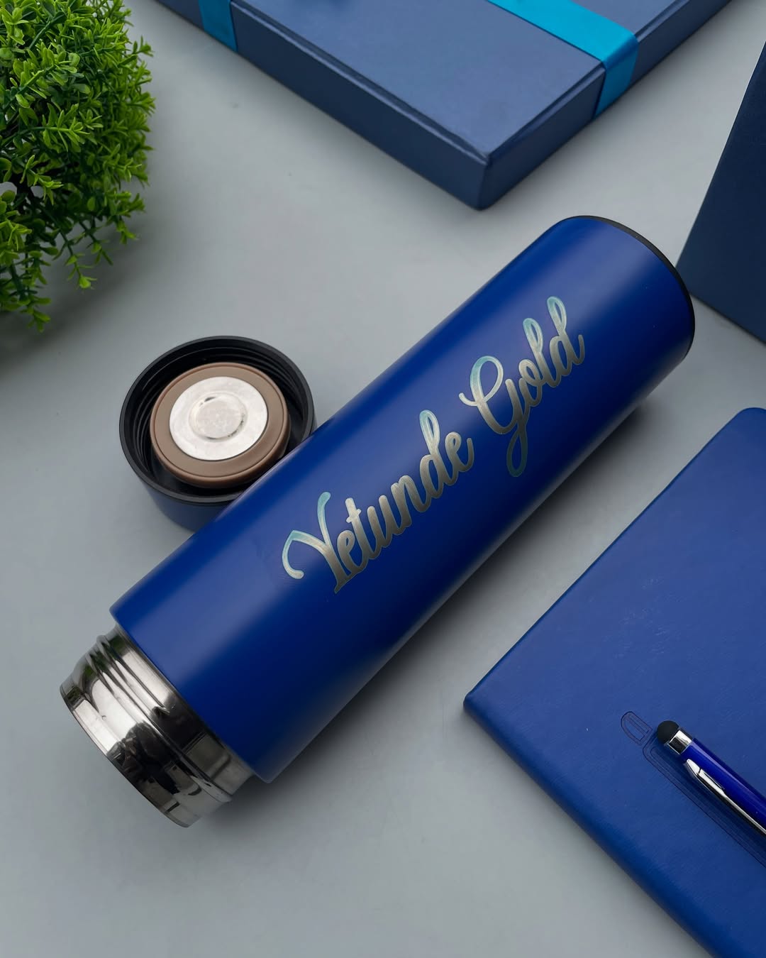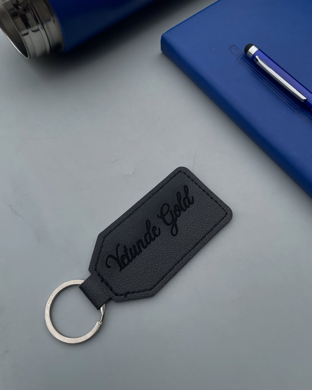 Blue Magnetic Pen Notebook with Flask and Leather Keyholder