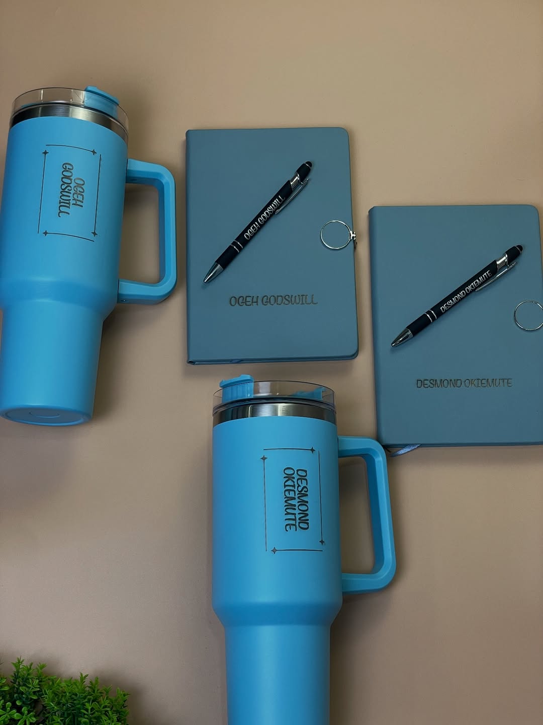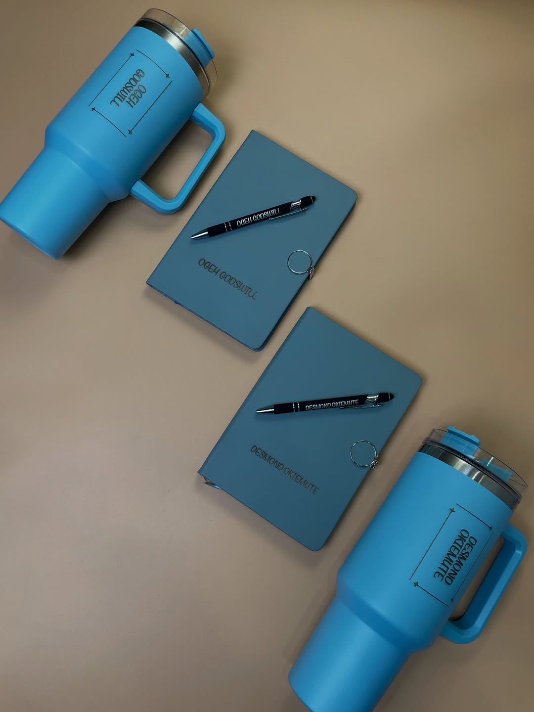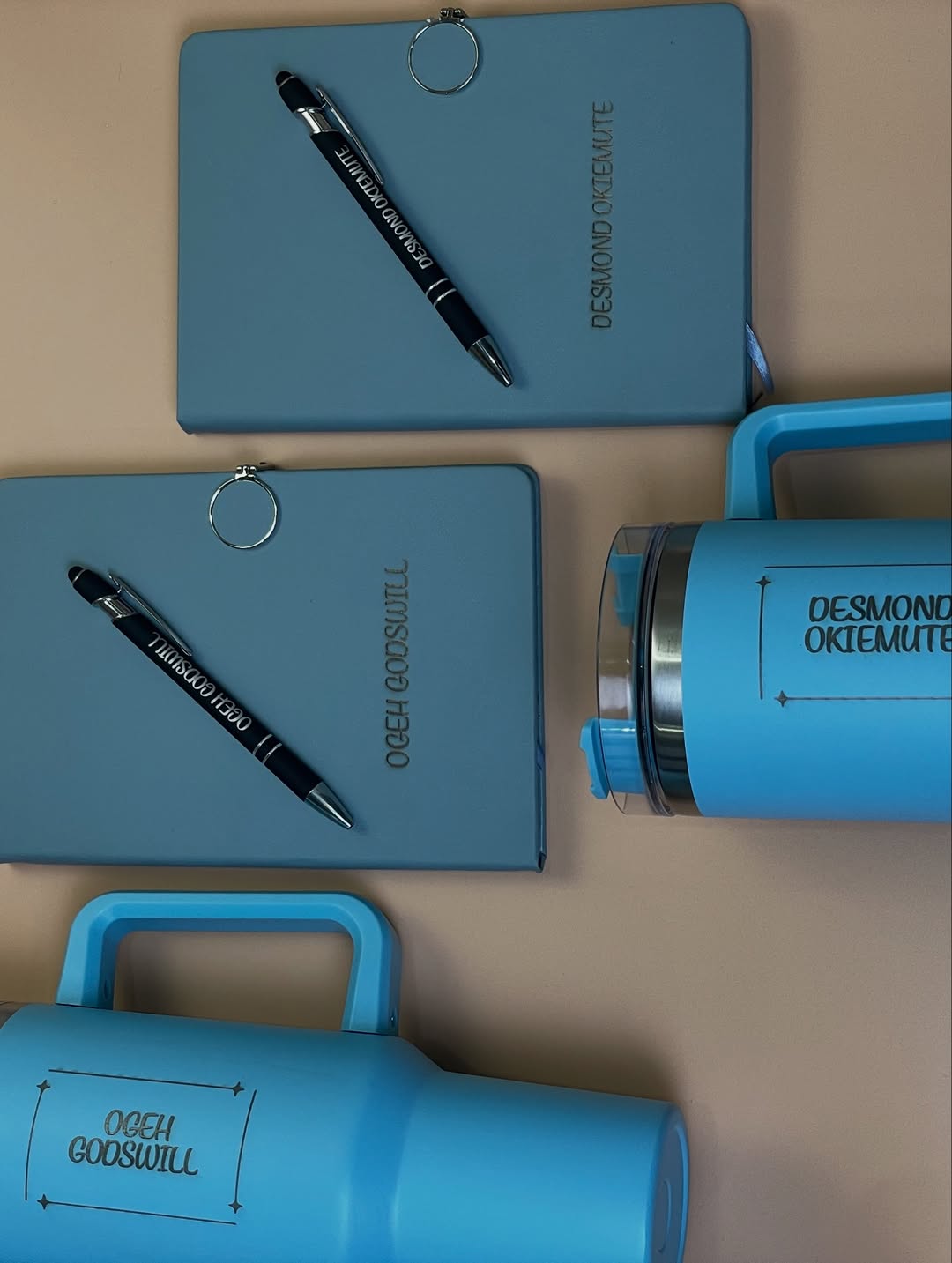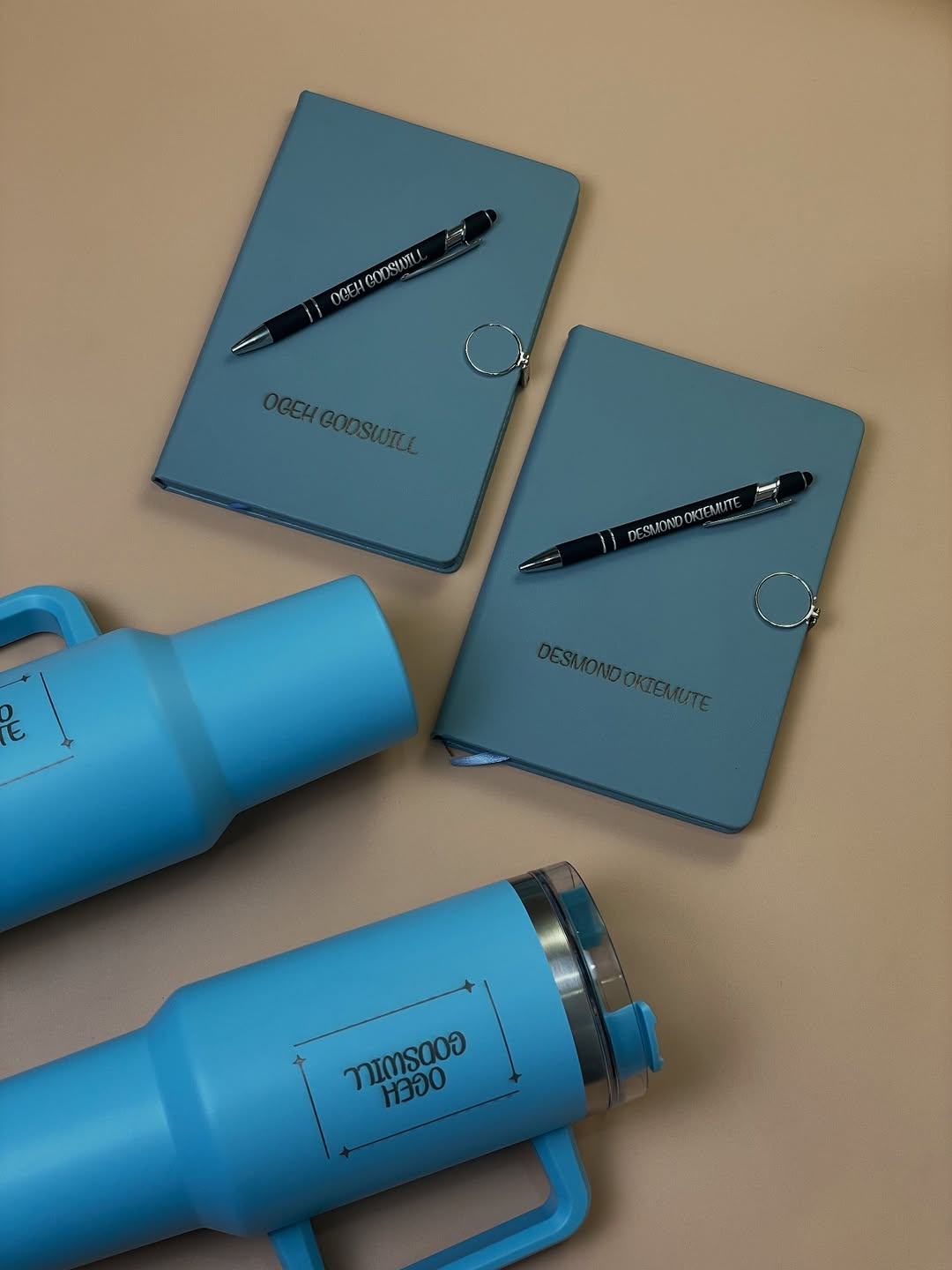 Blue Round Magnetic Notebook with Pen and Standing Jug