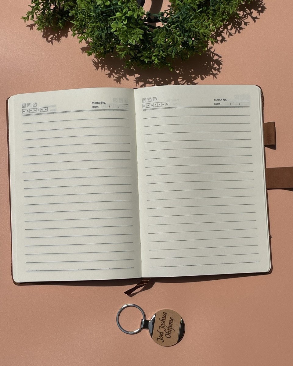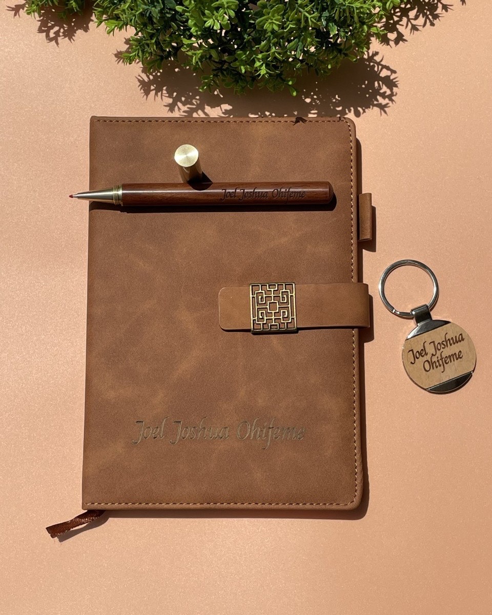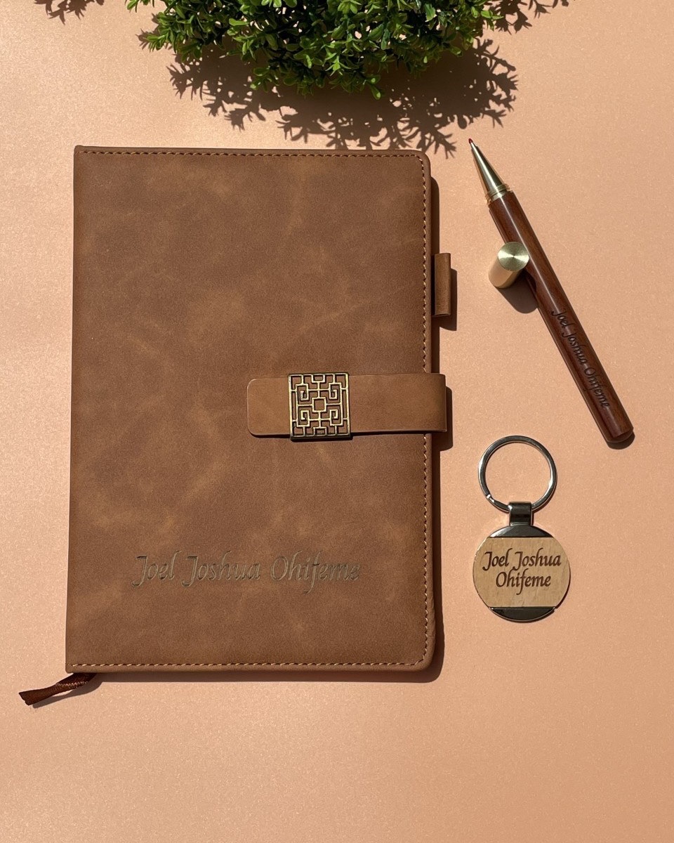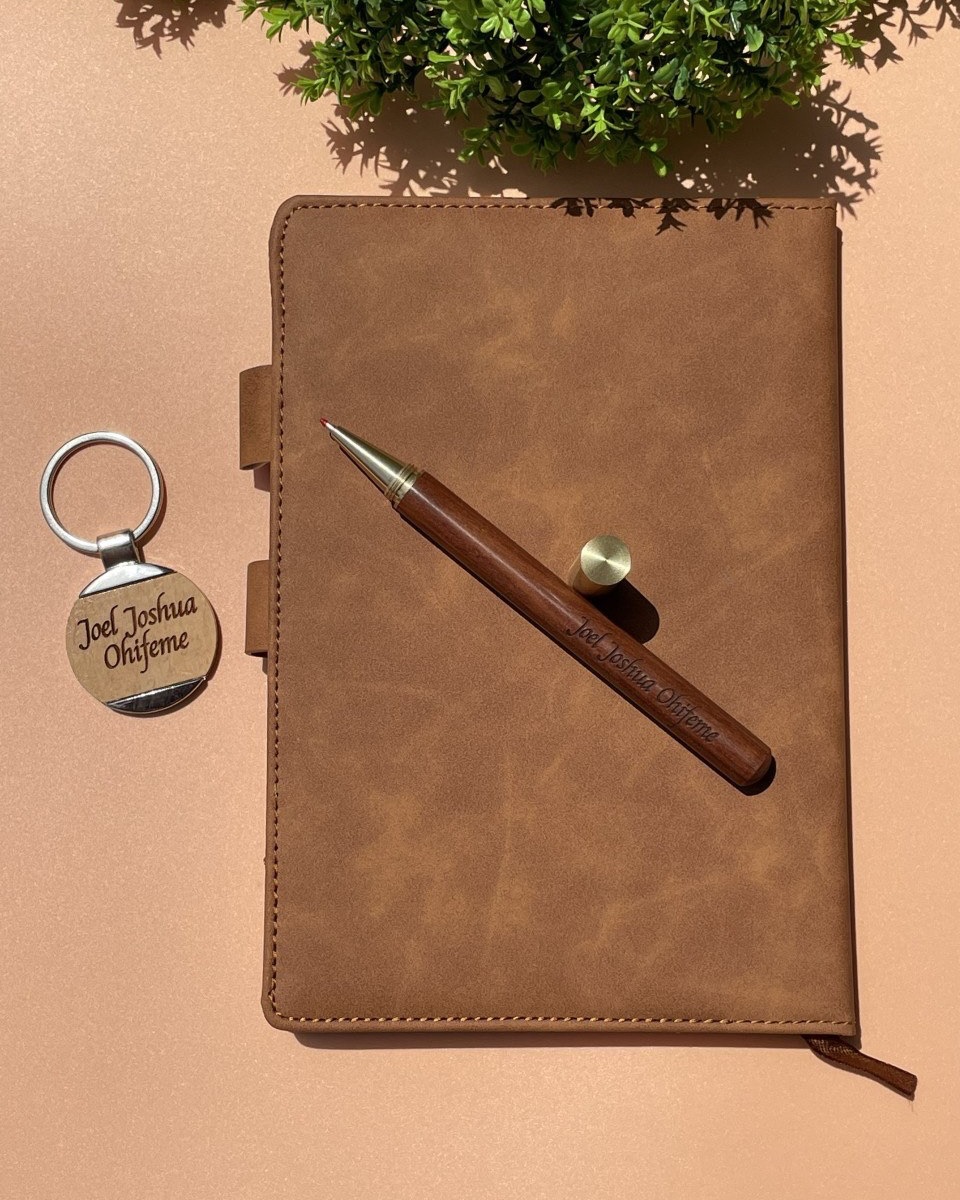 Brown Marble Notebook with Wooden Keyholder and Pen
