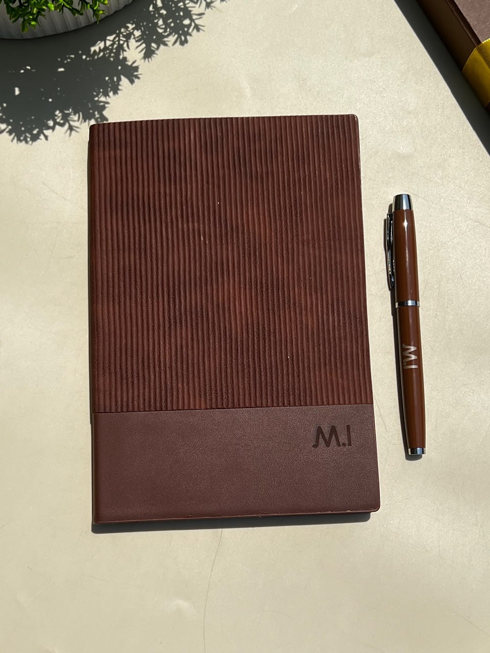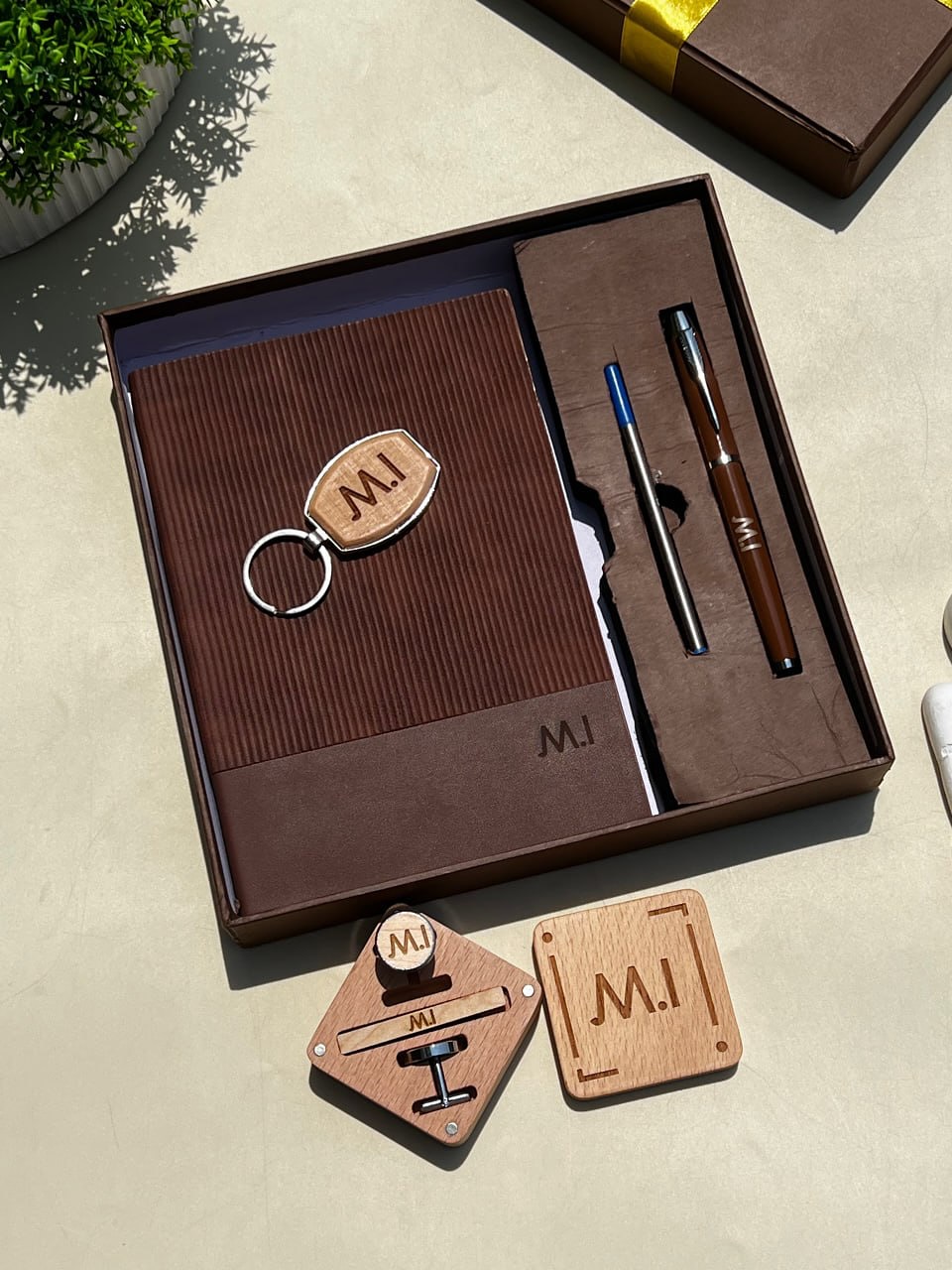 Brown Softline Notebook with Pen(REFILL),Wooden Keyholder, Wooden Cufflinks and Wooden TieClip