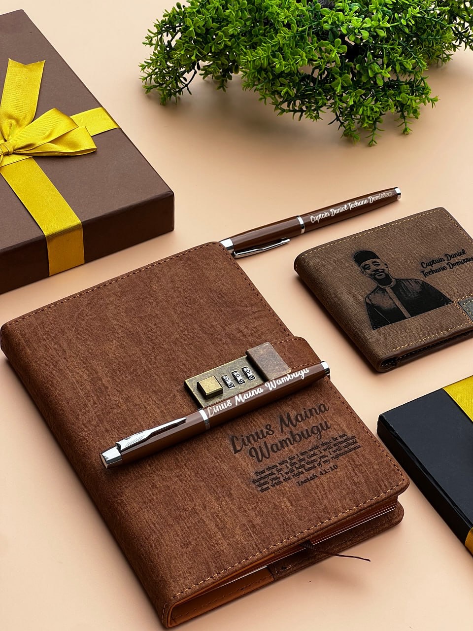 Brown Vintage Passcode Notebook with Pen(2) and a Wallet