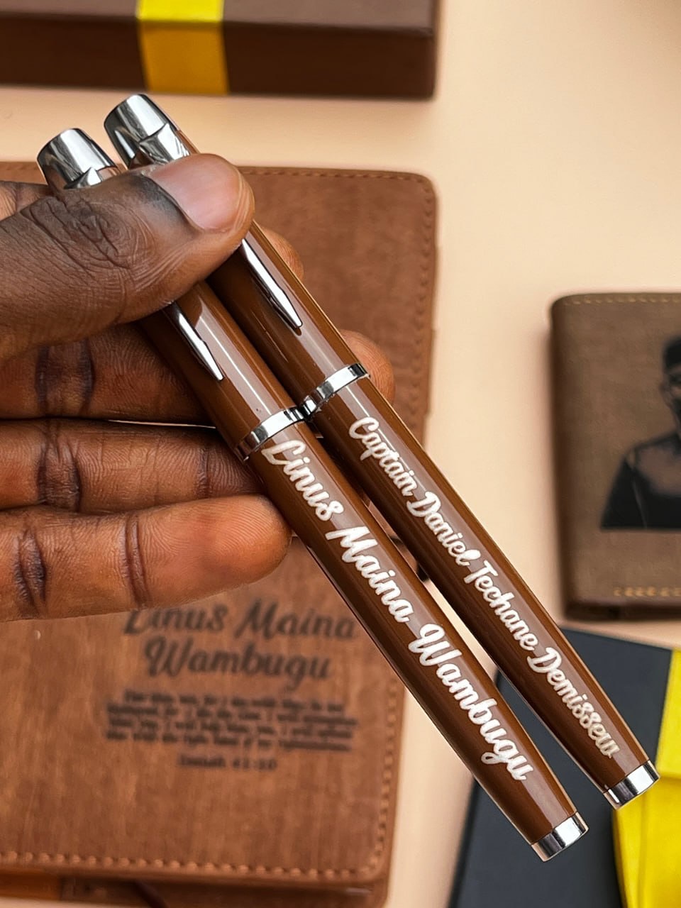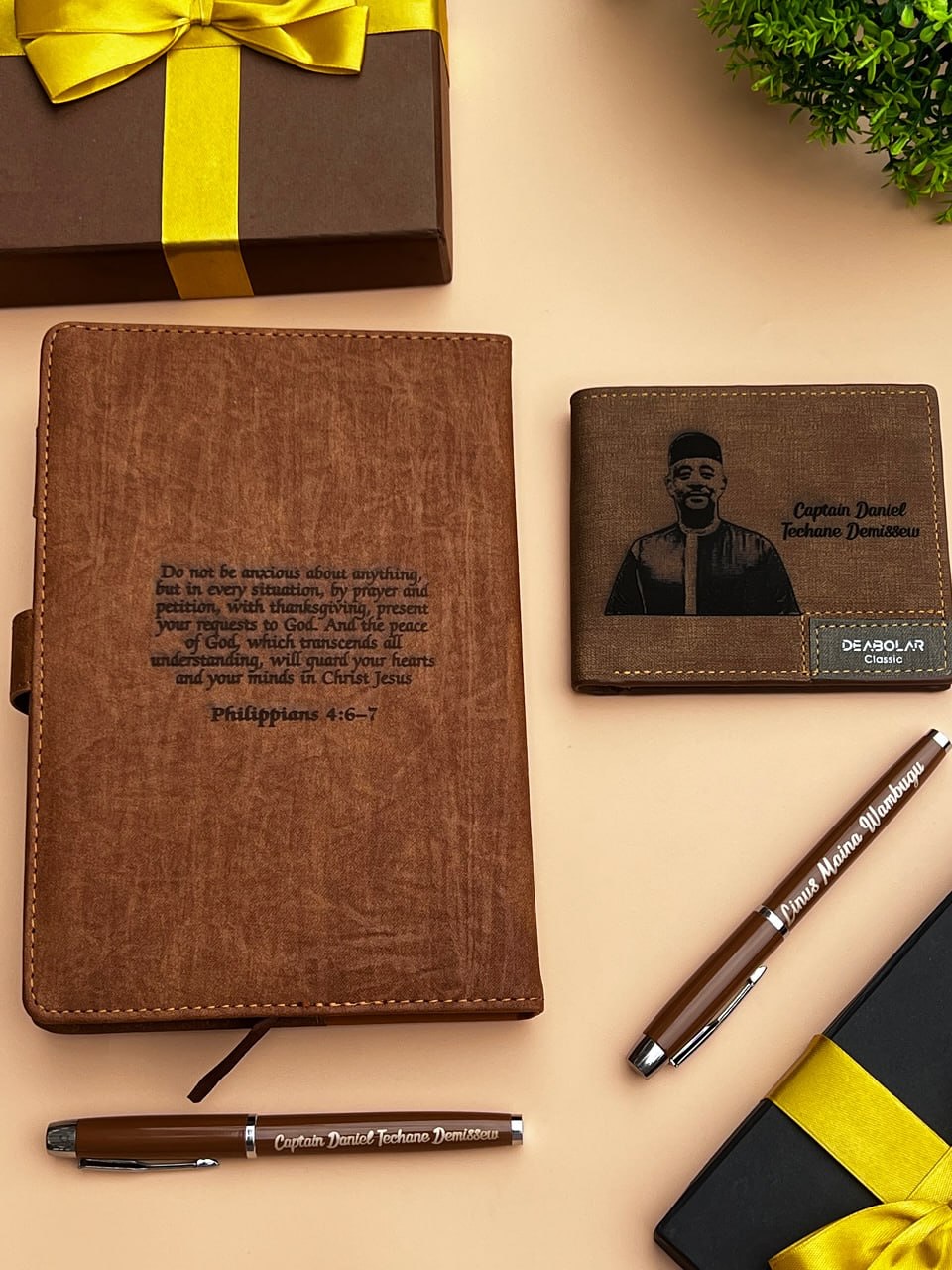 Wooden Notebook Set(Pen), Phone Holder and Wooden Flask