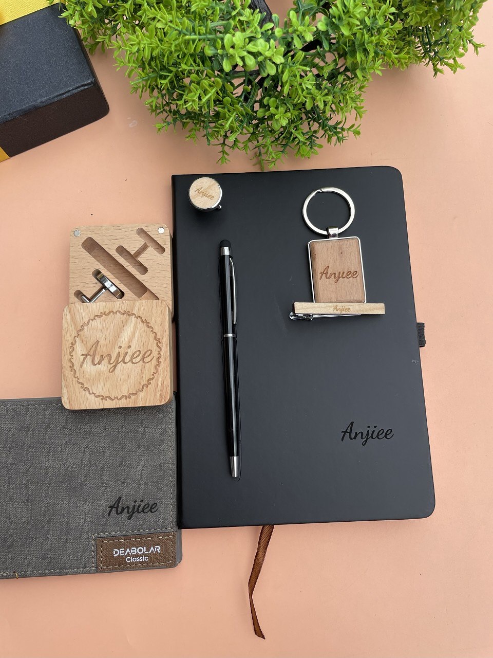 Magnetic Pen Notebook with Wallet, Wooden Keyholder, Wooden Cufflinks and TieClip