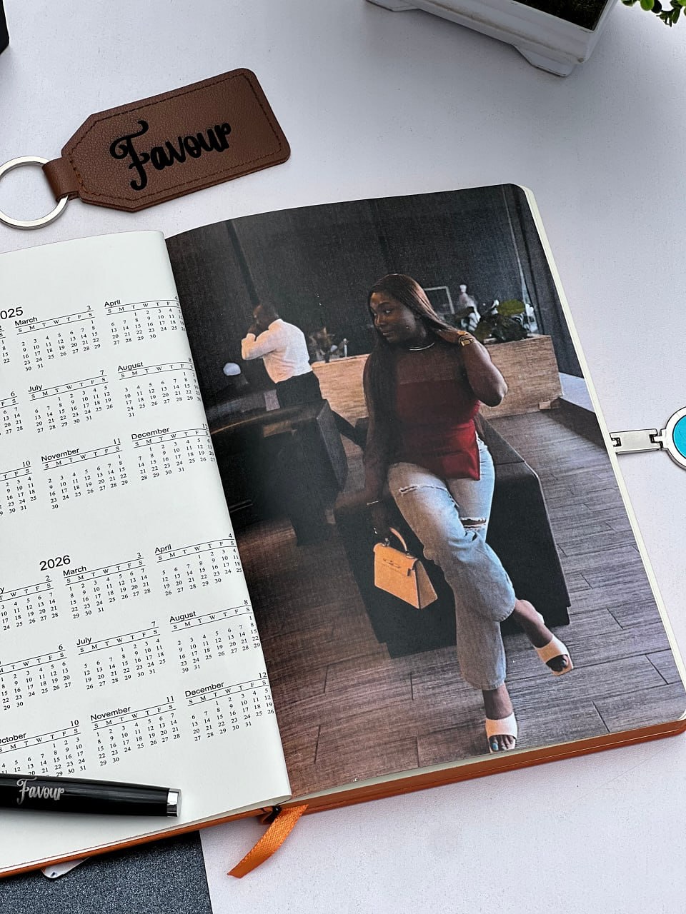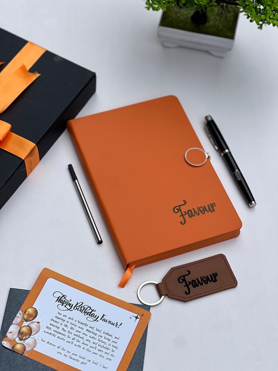 Orange Round Magnetic Noteboook with Picture Page,Pen(REFILL), Keyholder and a Notecard quantity