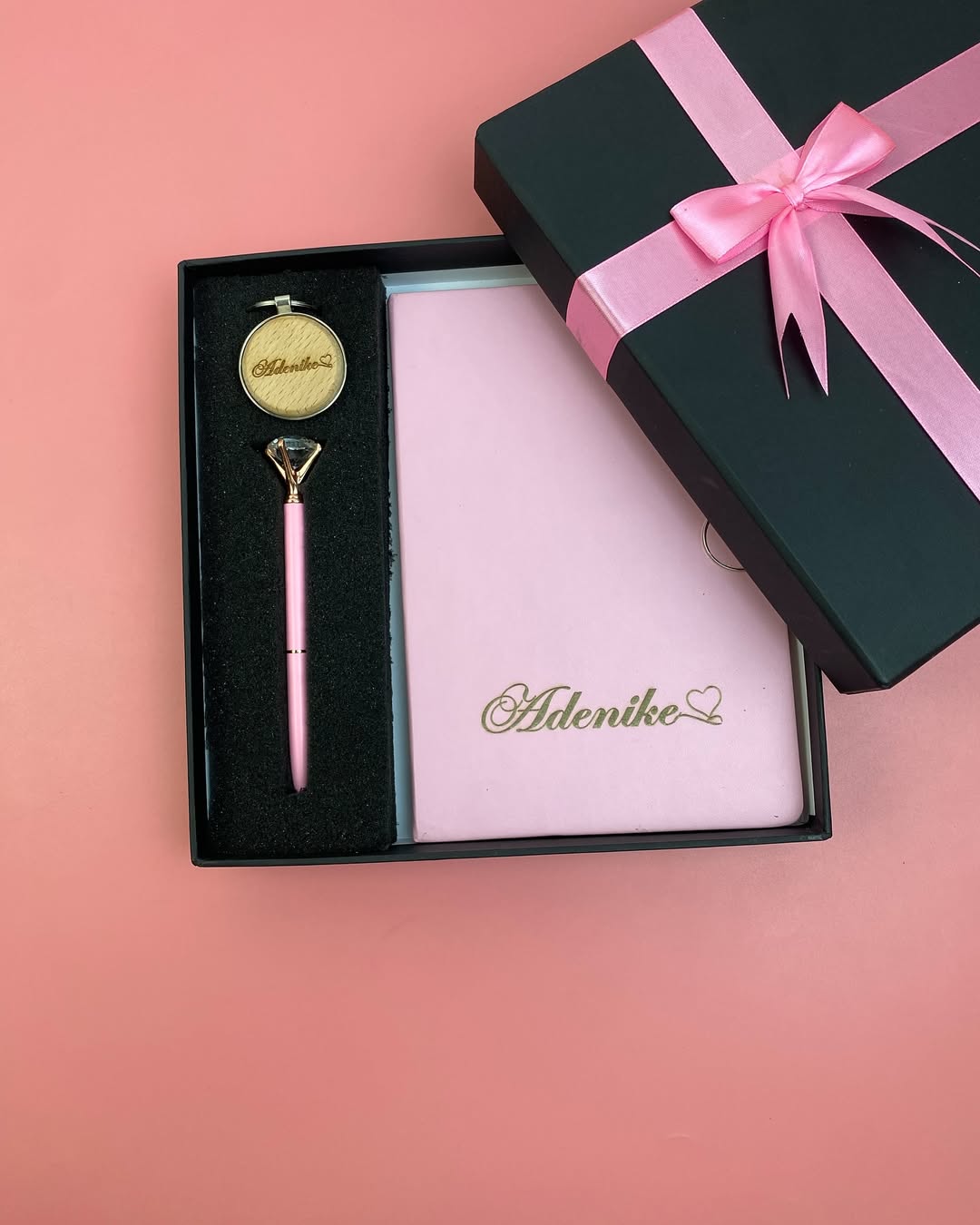 Round Magnetic Notebook with Picture Page, Wooden Keyholder and Pen quantity