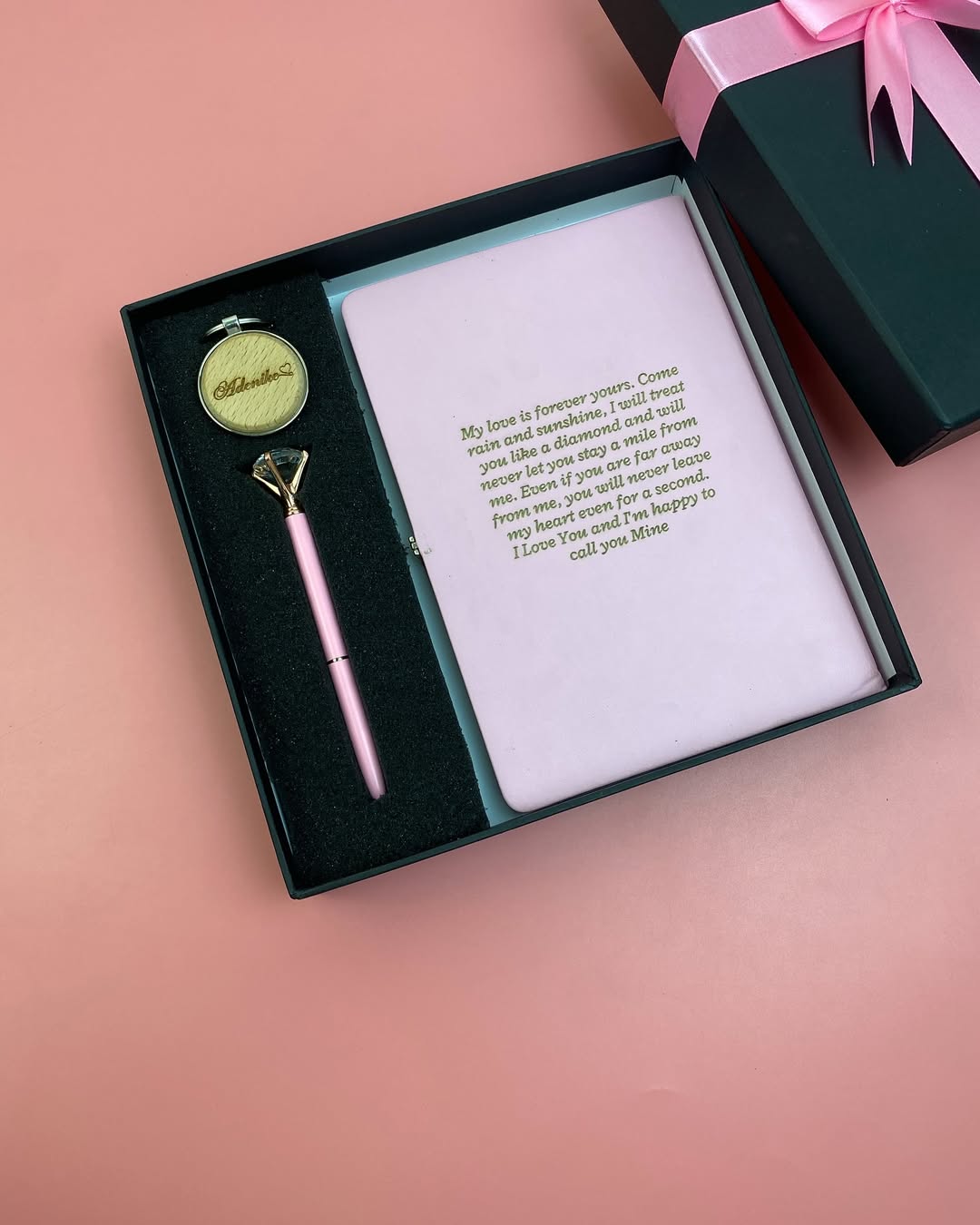 Round Magnetic Notebook with Picture Page, Wooden Keyholder and Pen