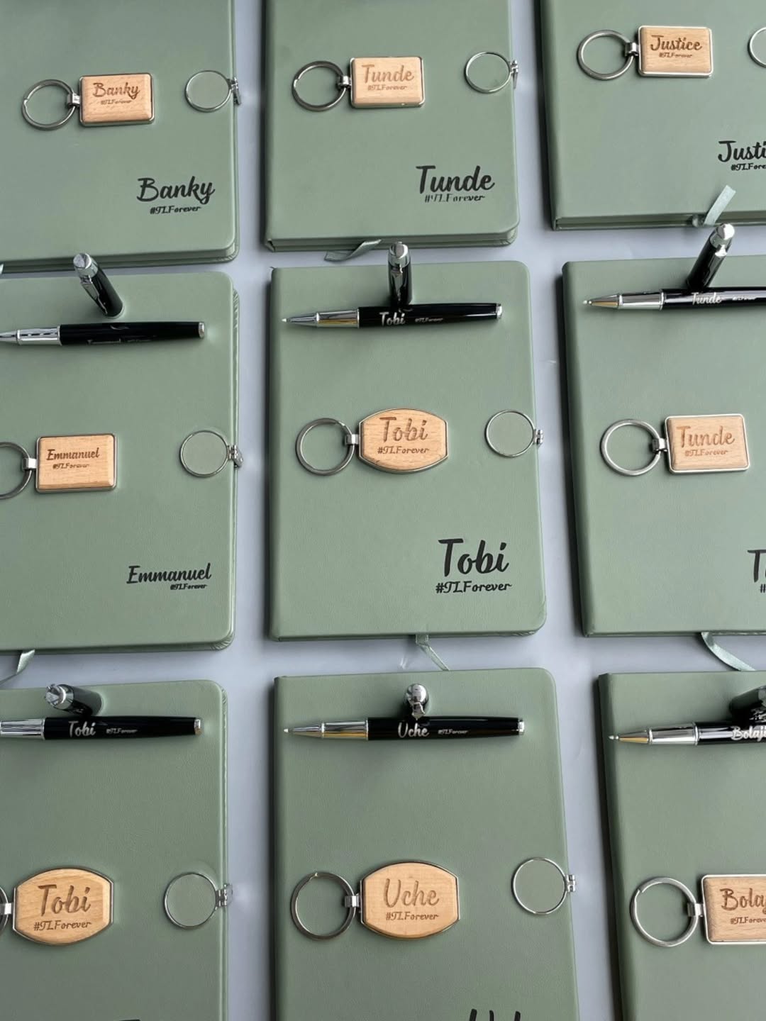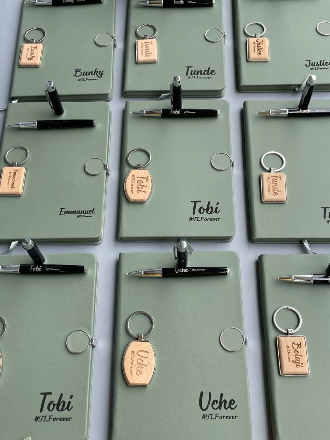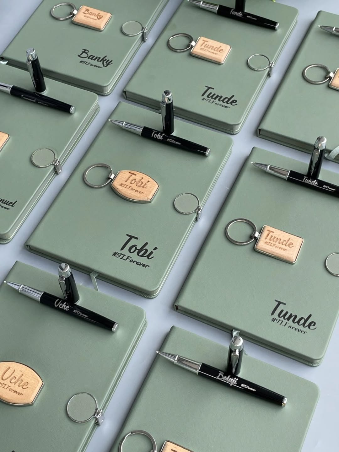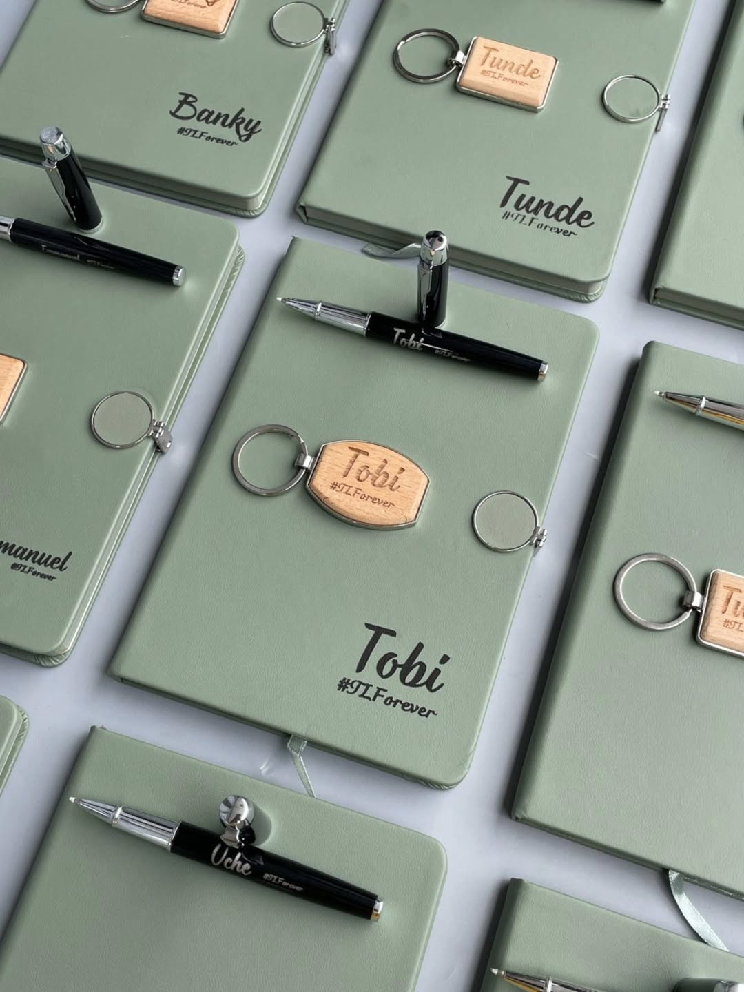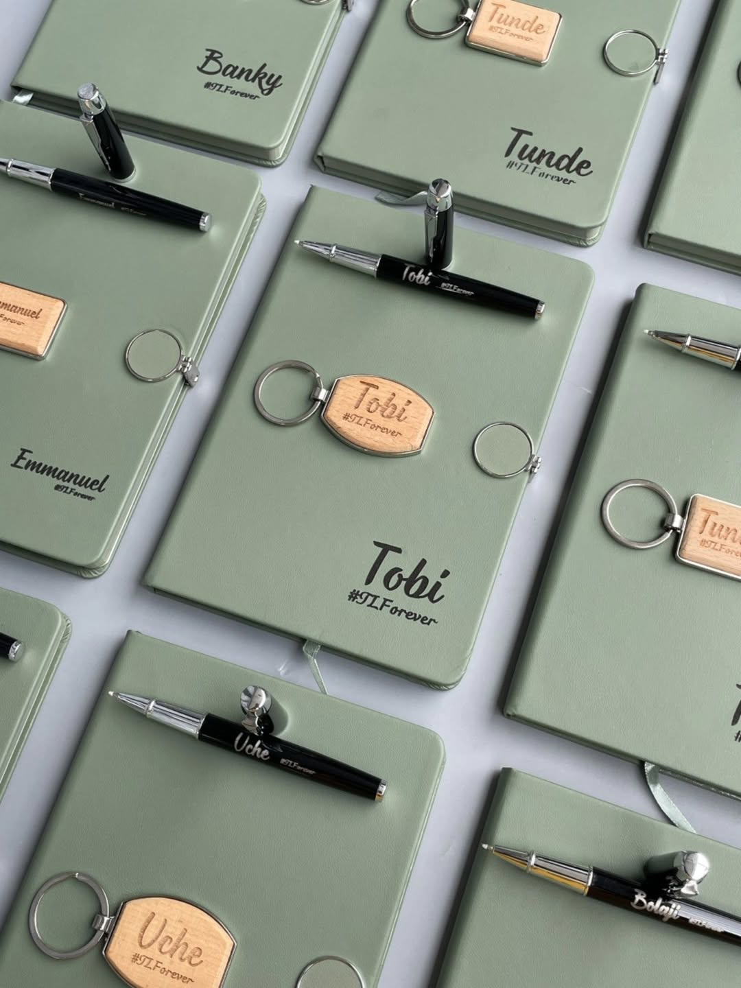 Set Of Sage Green Round Magnetic Notebooks with Pen and Wooden Keyholder quantity