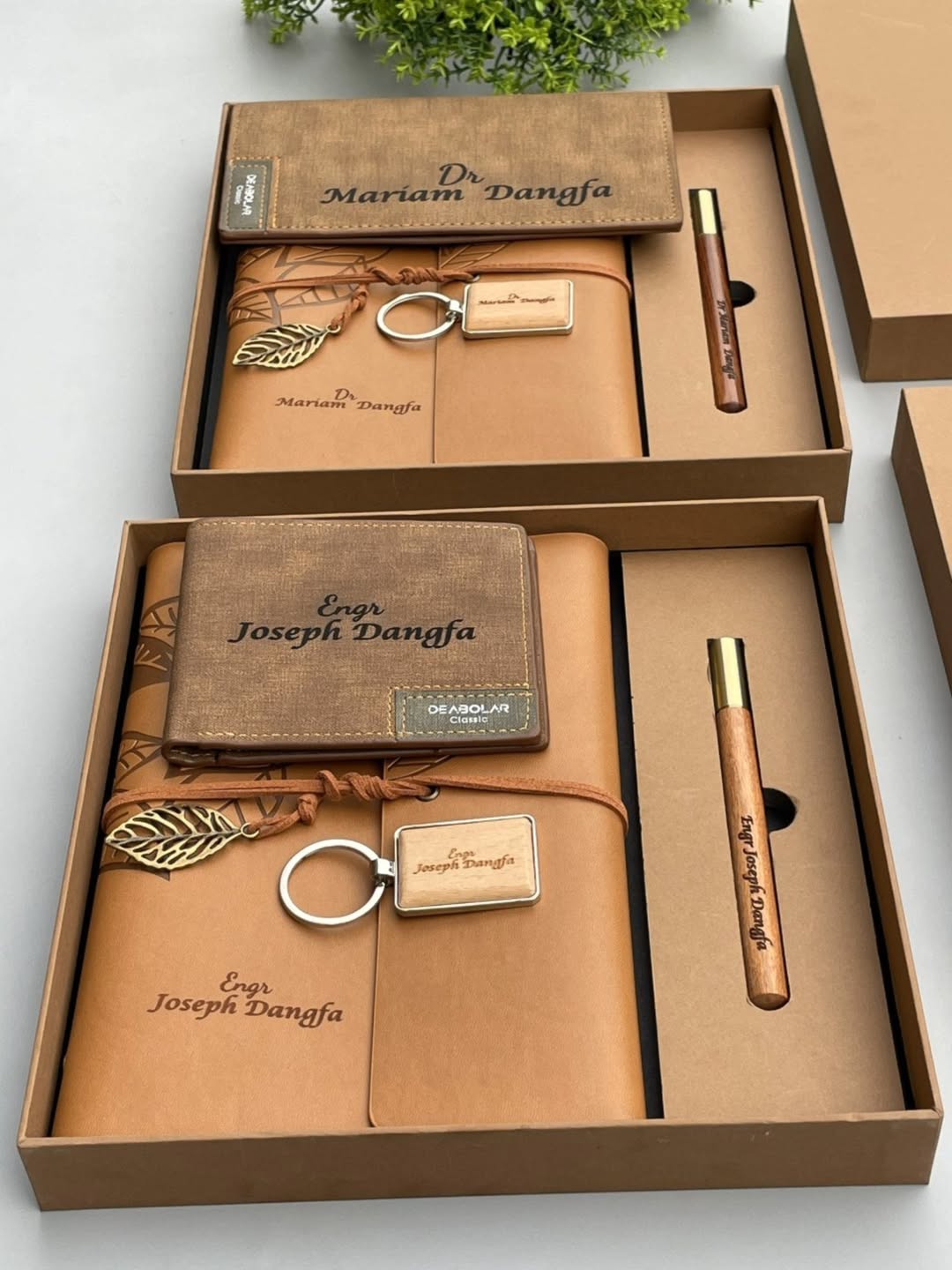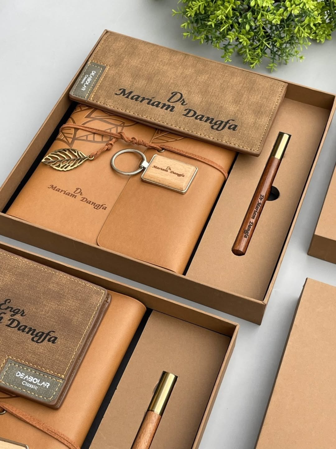 Tan Leatherbound Notebook with Pen, Wooden Keyholder and Wallet quantity