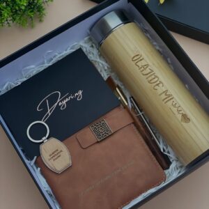 Marble Notebook with Wooden Keyholder, Flask, Pen and a Notecard