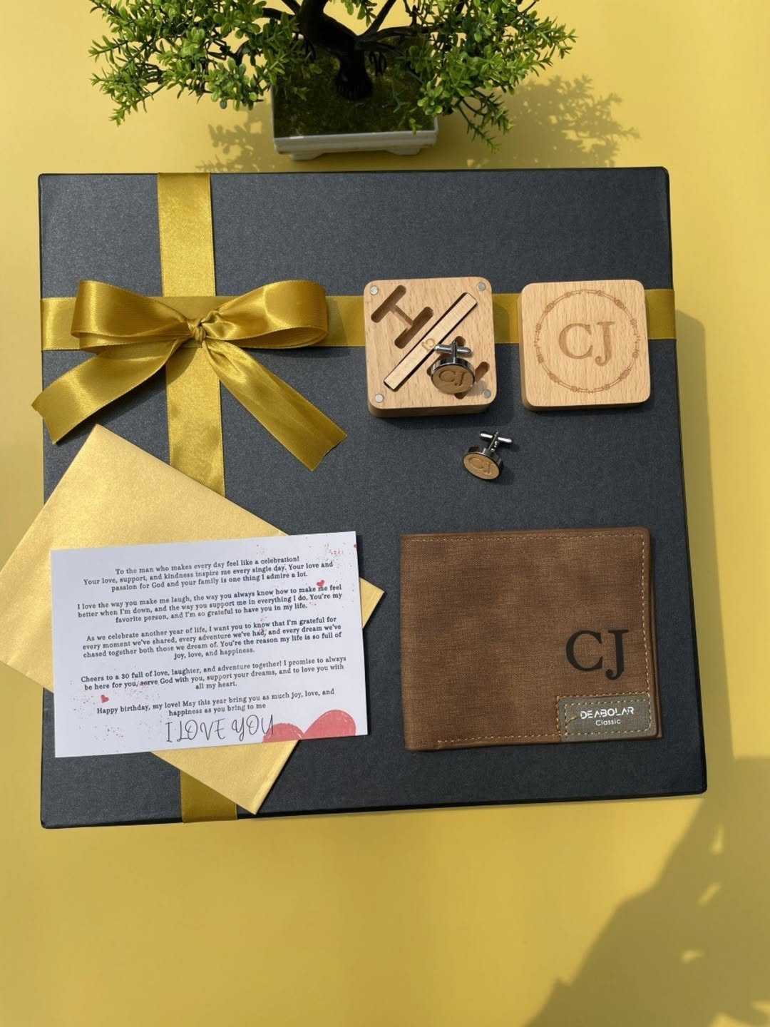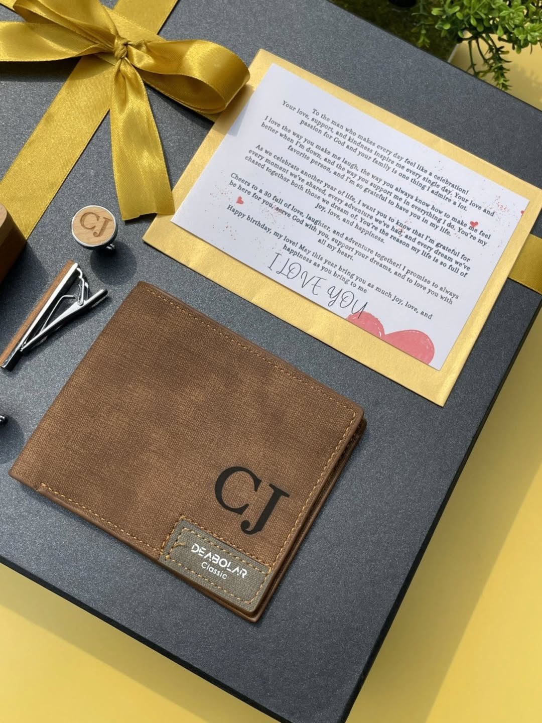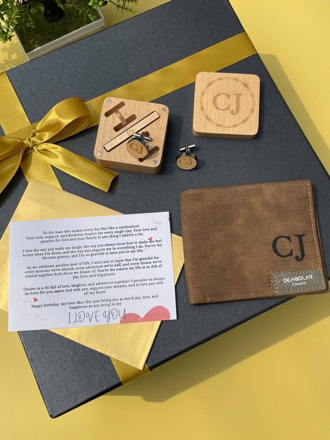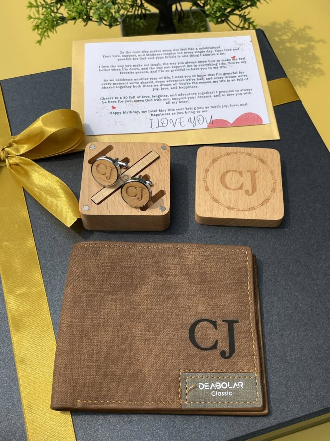 Wooden Cufflinks, Wooden TieClip,Wallet and a Notecard