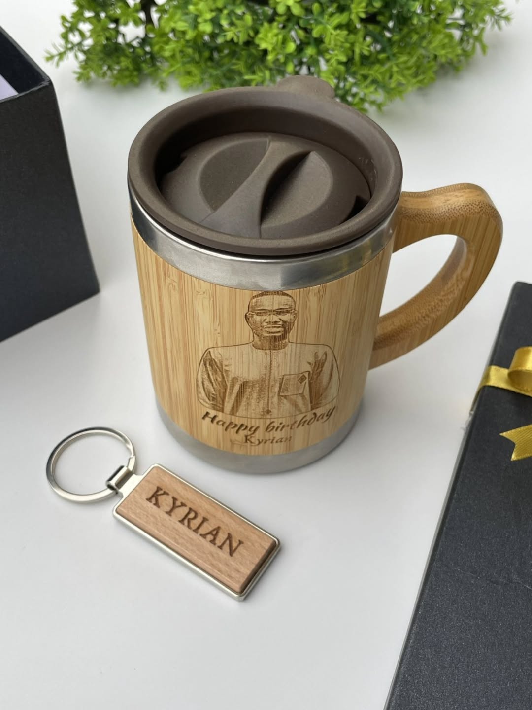 Brown Leatherbound Notebook with Pen, Keyholder and Flask(Black)