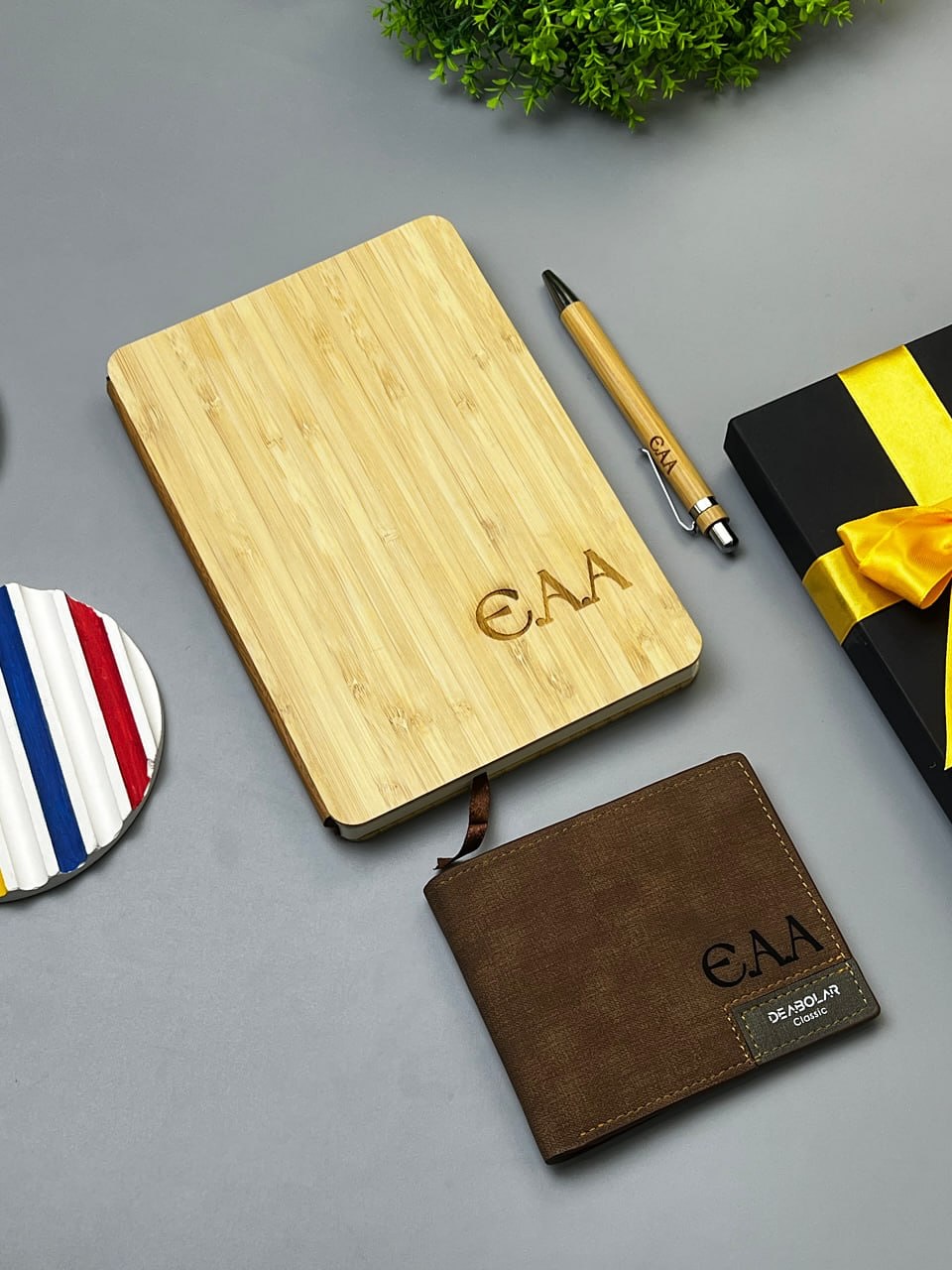 Wooden Notebook set(PEN) with Picture Page and a Wallet