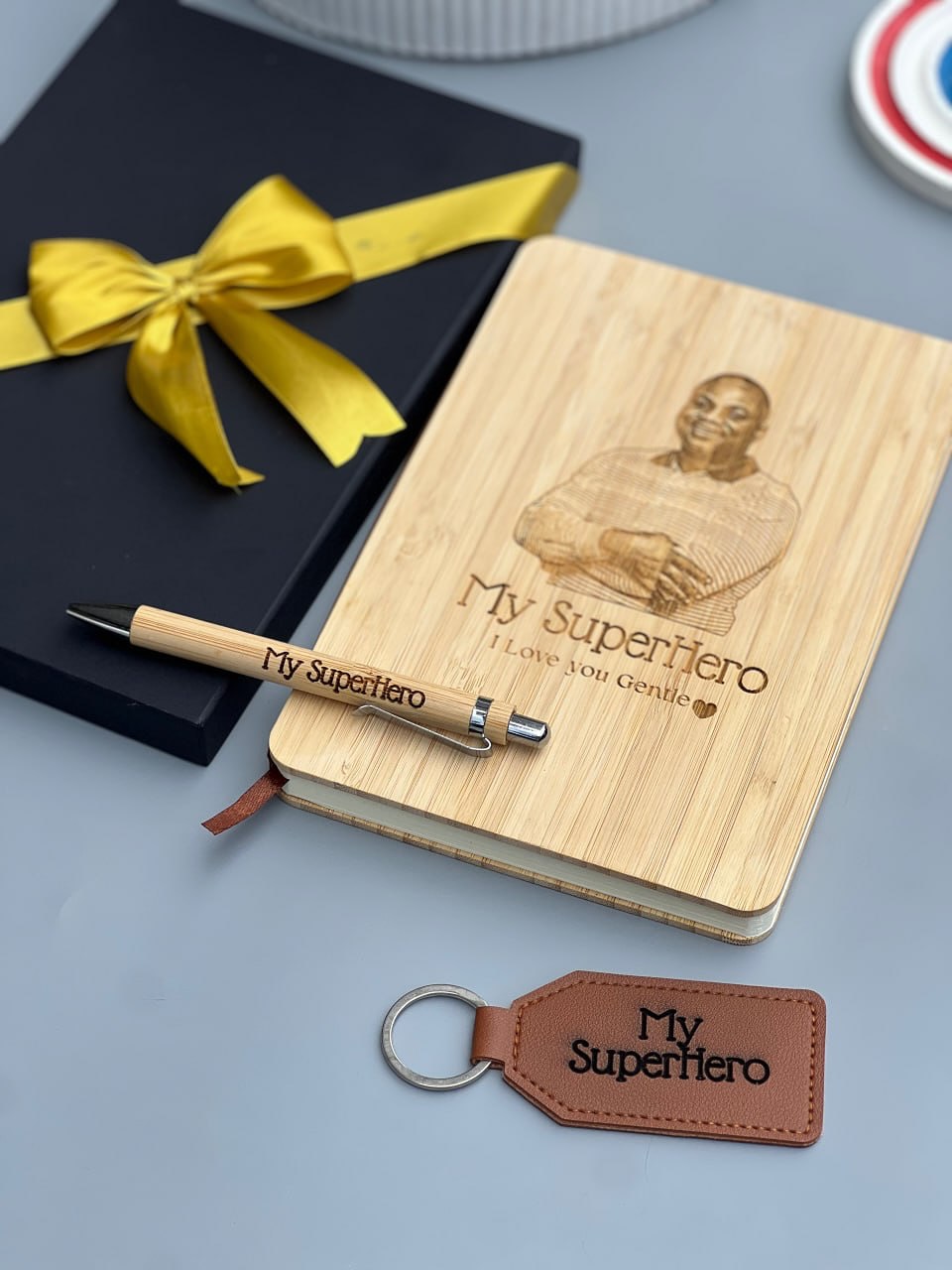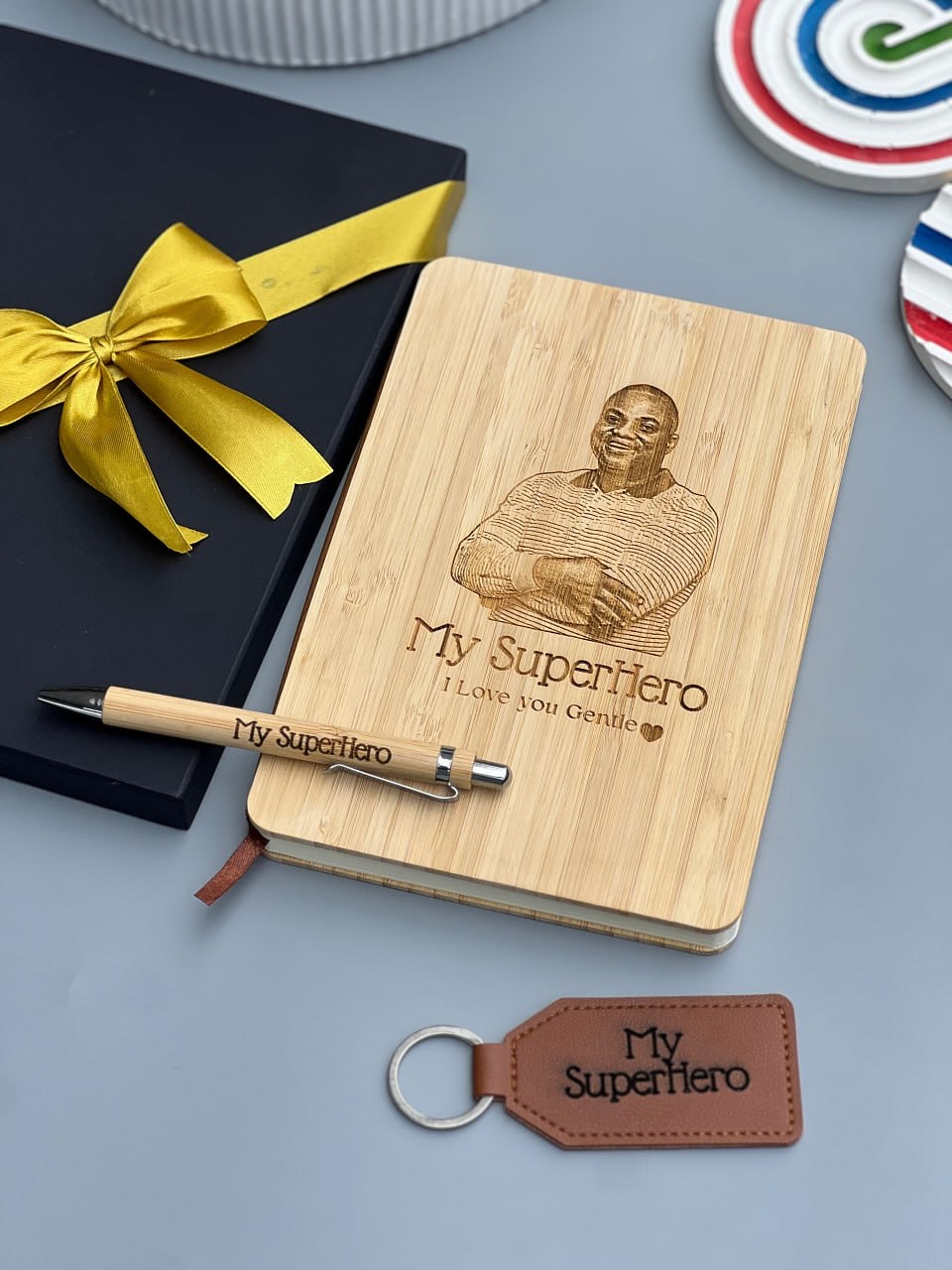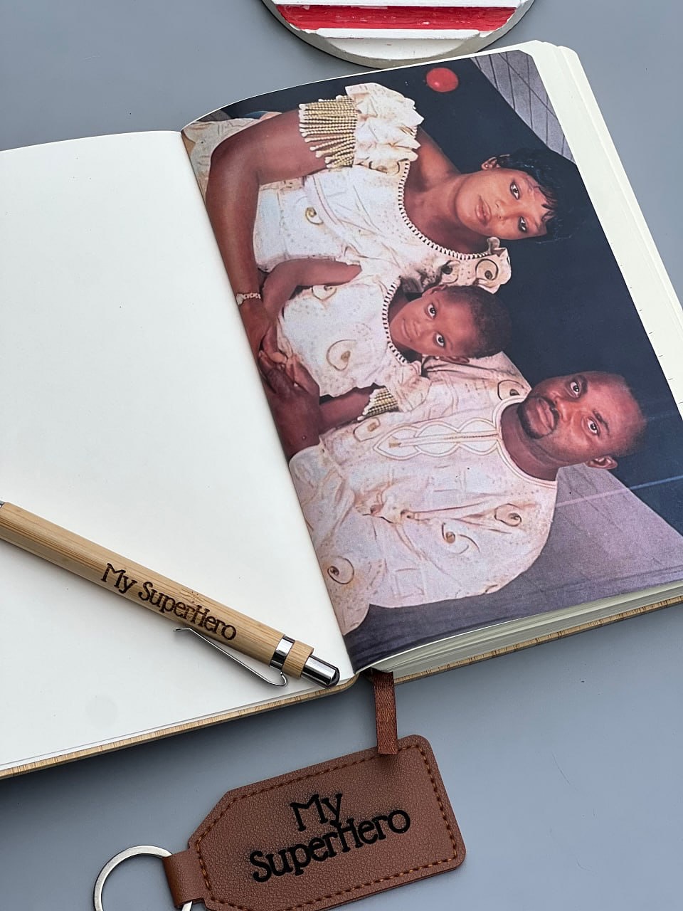 Wooden Notebook set(PEN) with Picture Page Brown Leather Keyholder