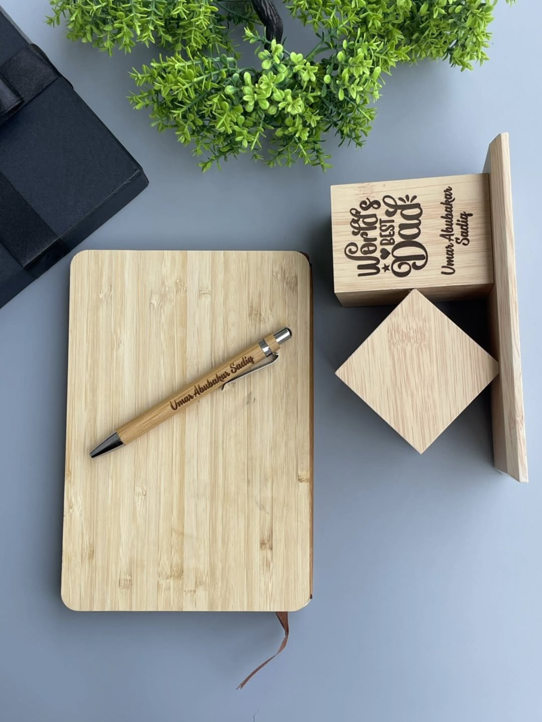Wooden Notebook set(PEN) with Wooden Alarm Clock