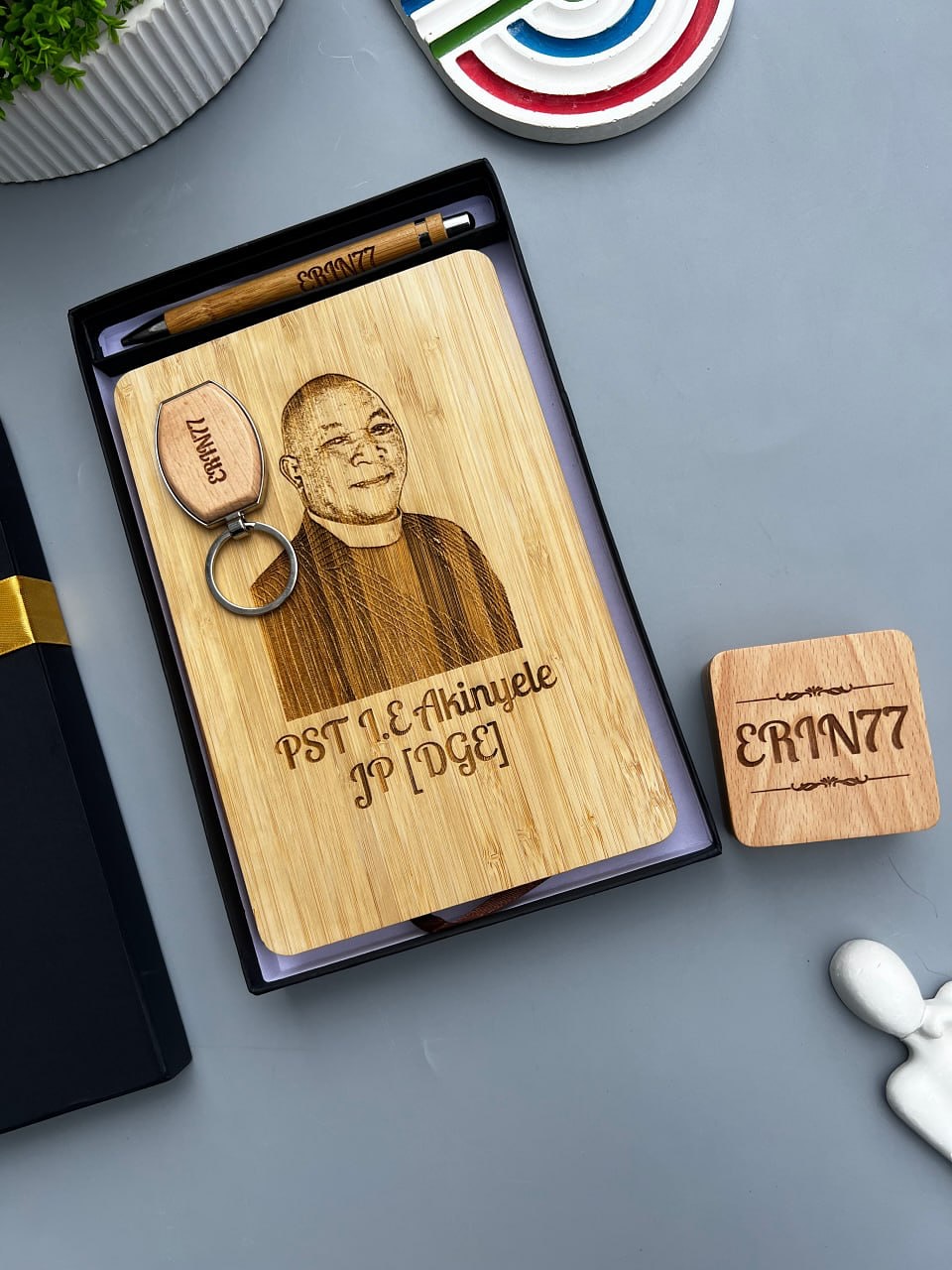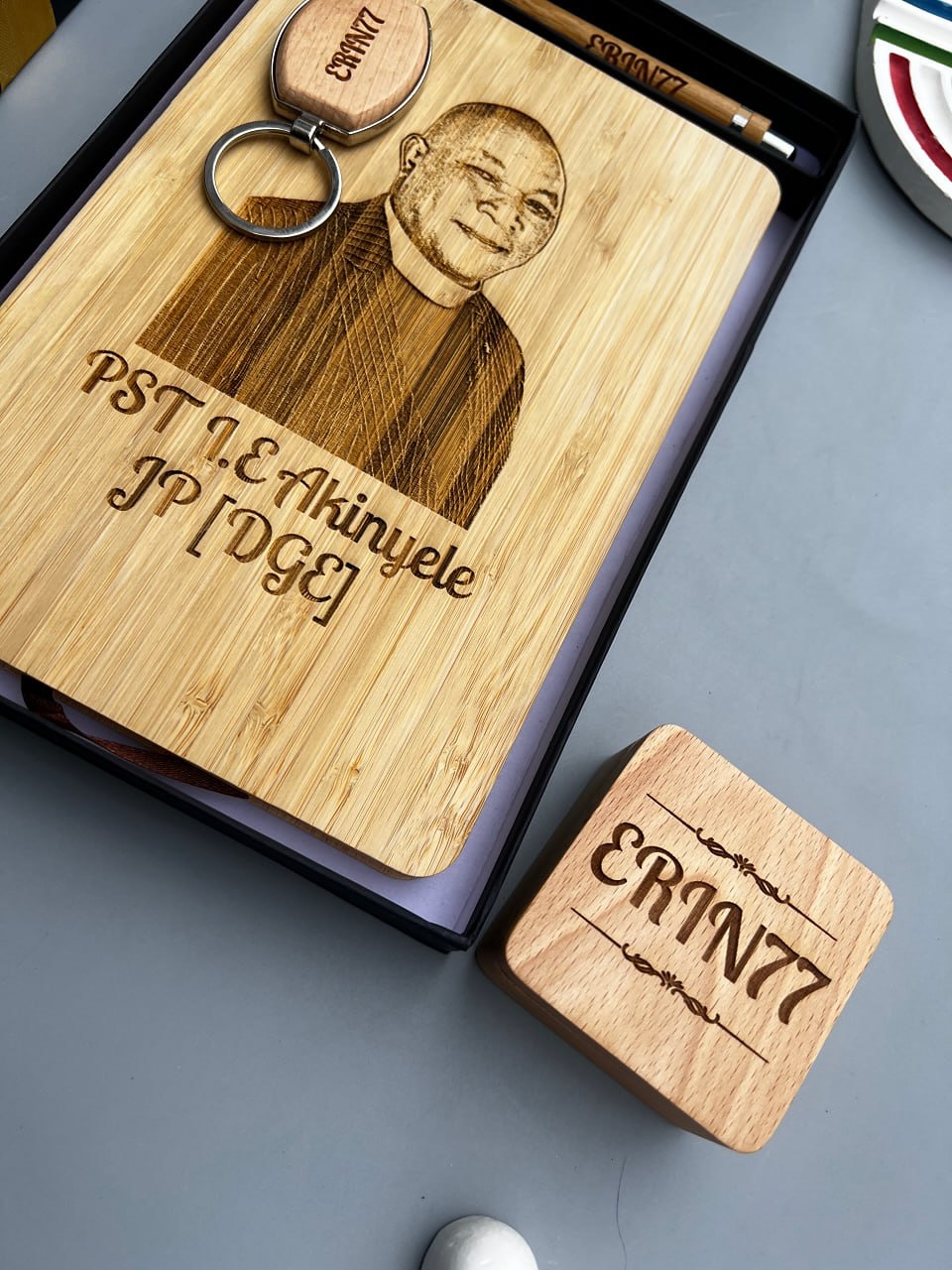 Wooden Notebook set(PEN) with Wooden Cufflinks, Wooden TieClip and Wooden Keyholder