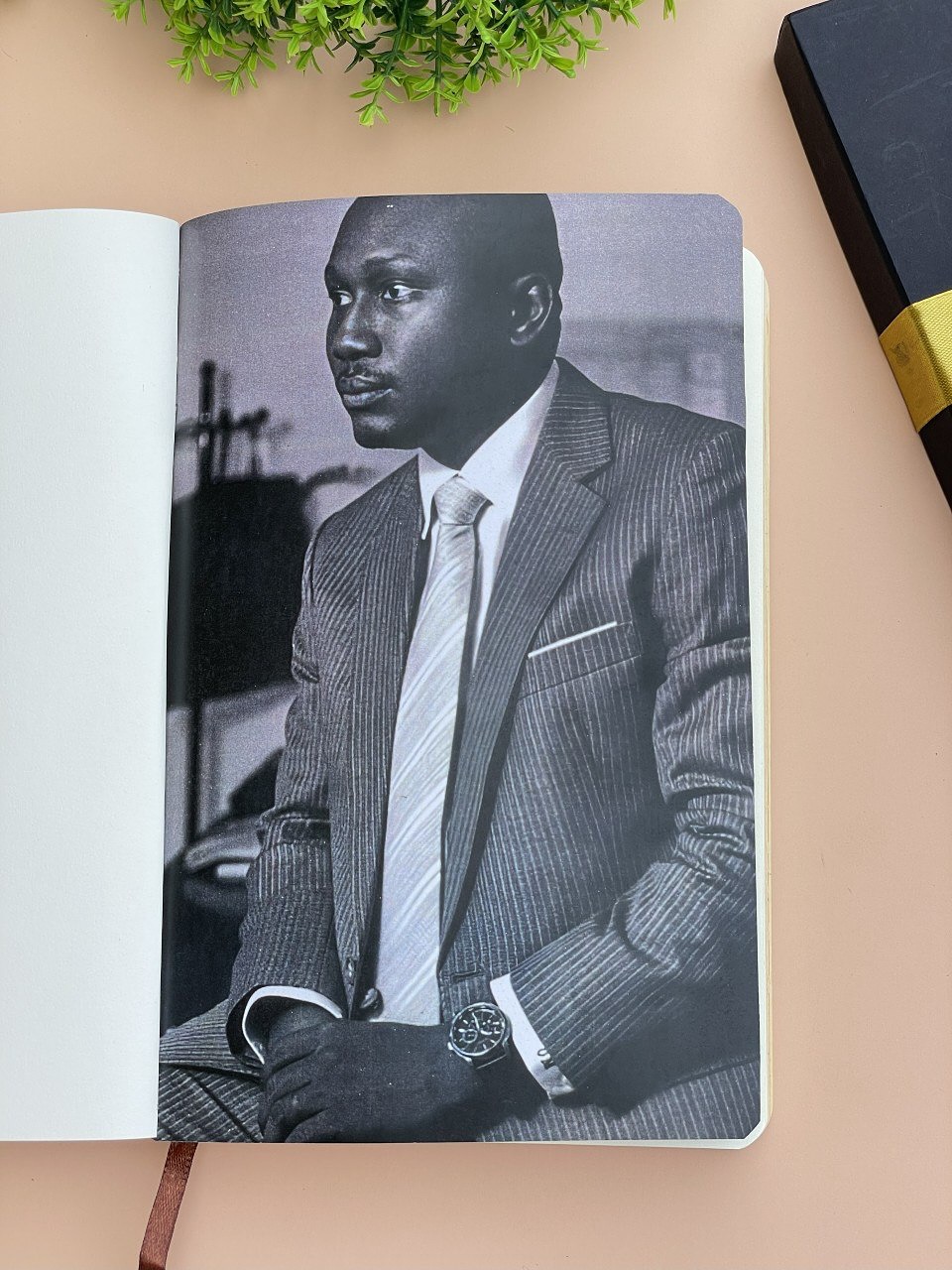 Brown Softline Notebook with Pen(REFILL),Wooden Alarmclock, Wooden Cufflinks,TieClip and Keyholder