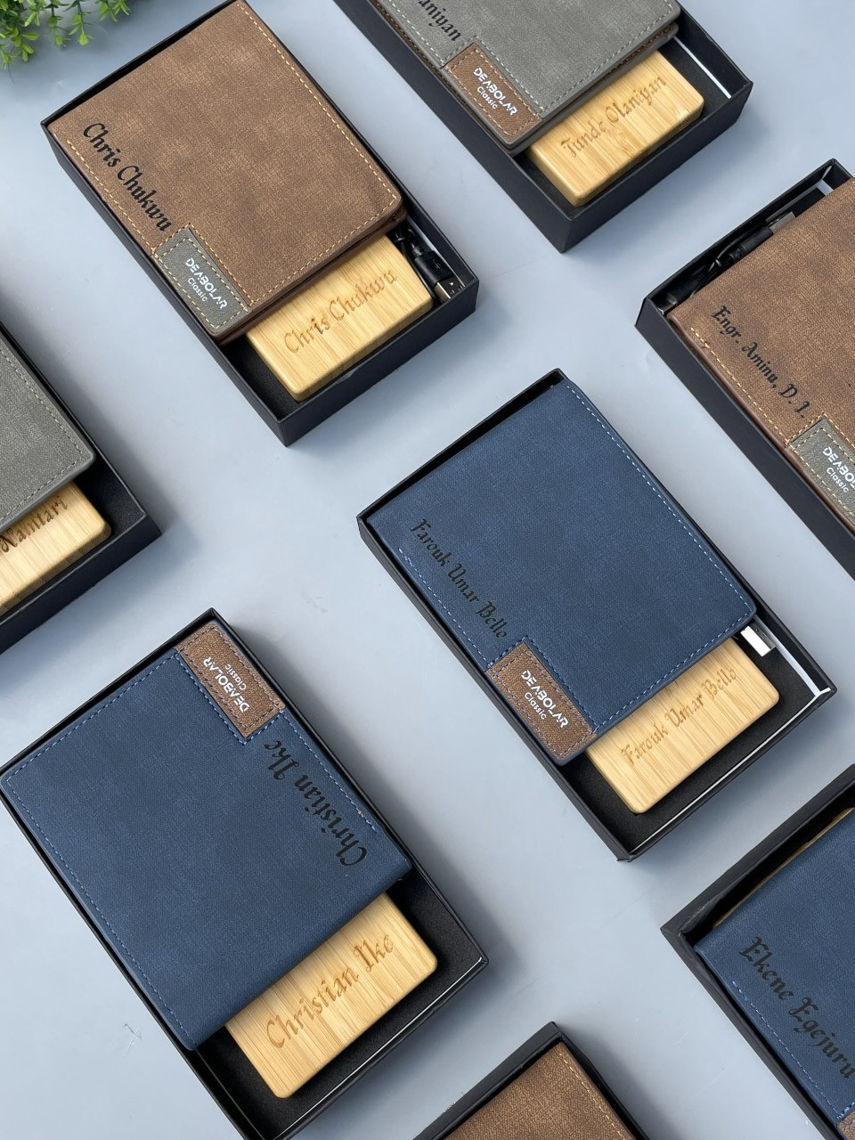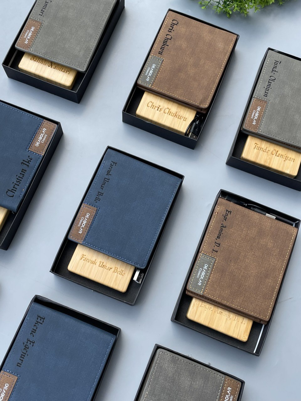 Tan Leatherbound Notebook with Pen, Wallet and Notecard